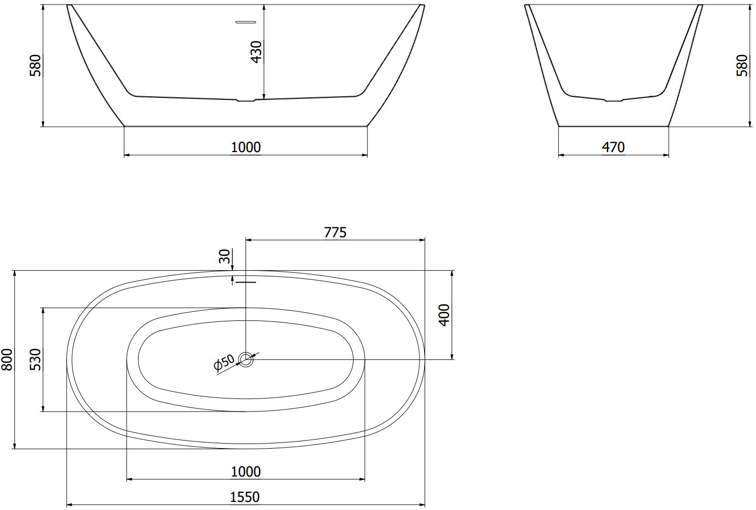 Mexen Eris ελεύθερη μπανιέρα 155 x 80 cm, λευκή, υπερχείλιση χρωμίου - 53441558000-01