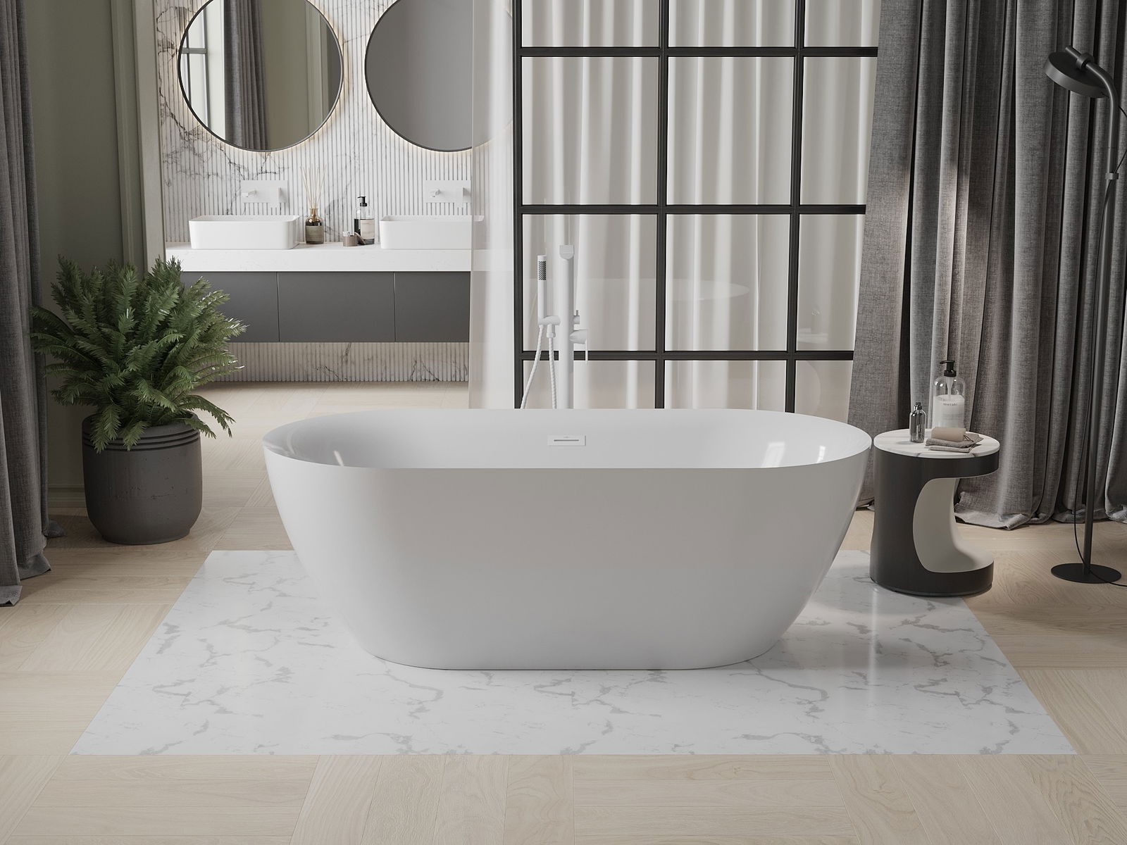 Mexen Roxy μπανιέρα ελεύθερης τοποθέτησης 170 x 80 cm, λευκή, λευκή υπερχείλιση