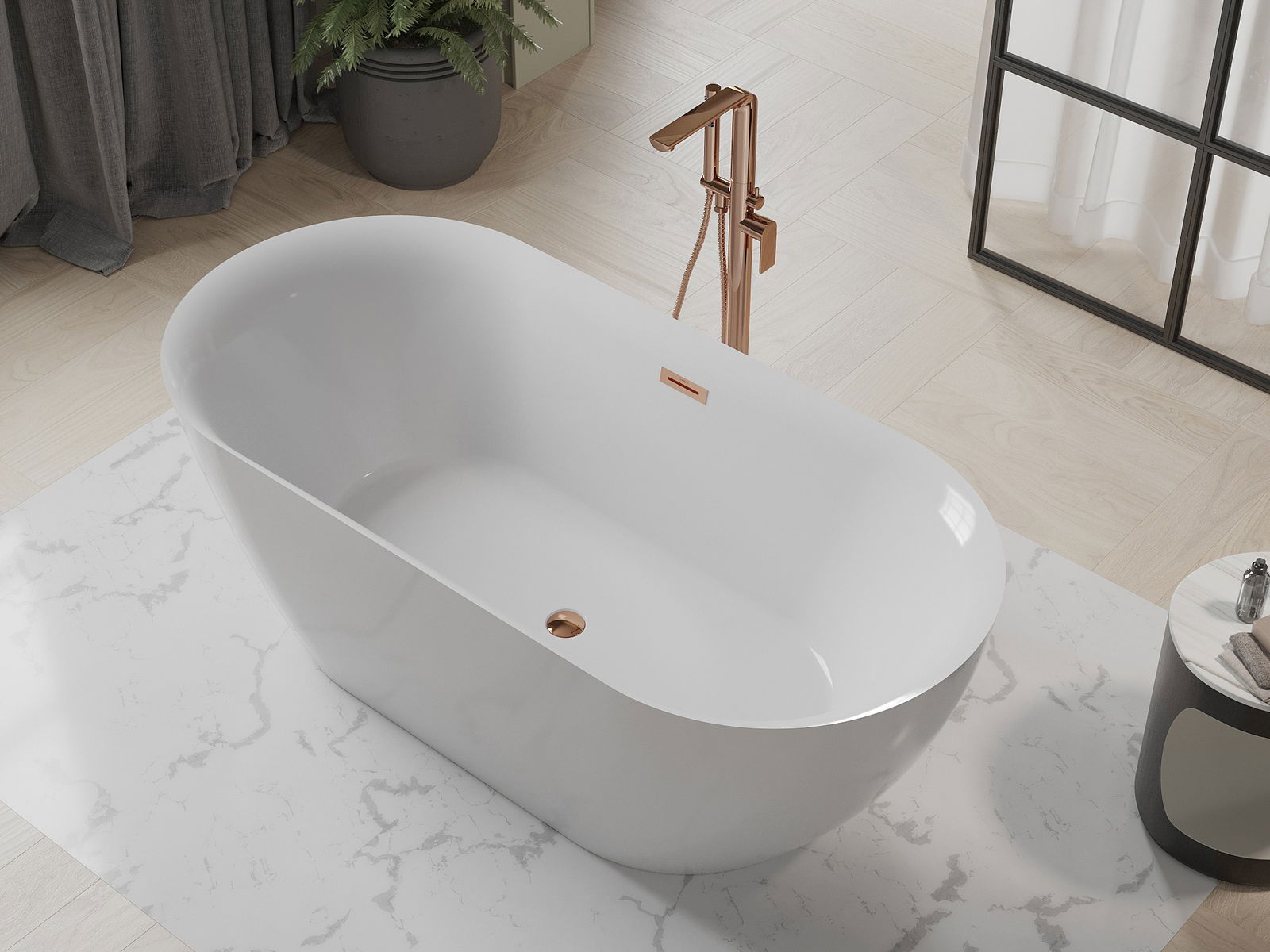 Mexen Roxy μπανιέρα ελεύθερη 170 x 80 cm, λευκή, υπερχείλιση ροζ χρυσό - 51201708000-60