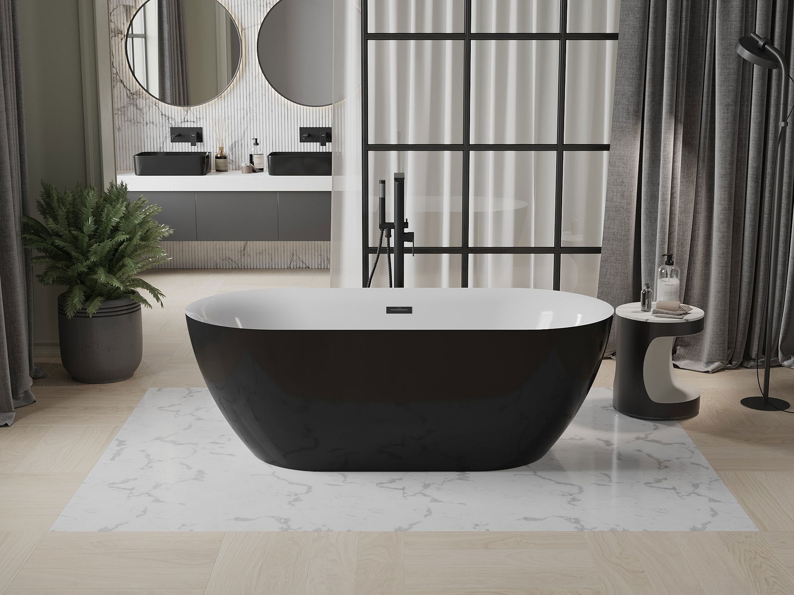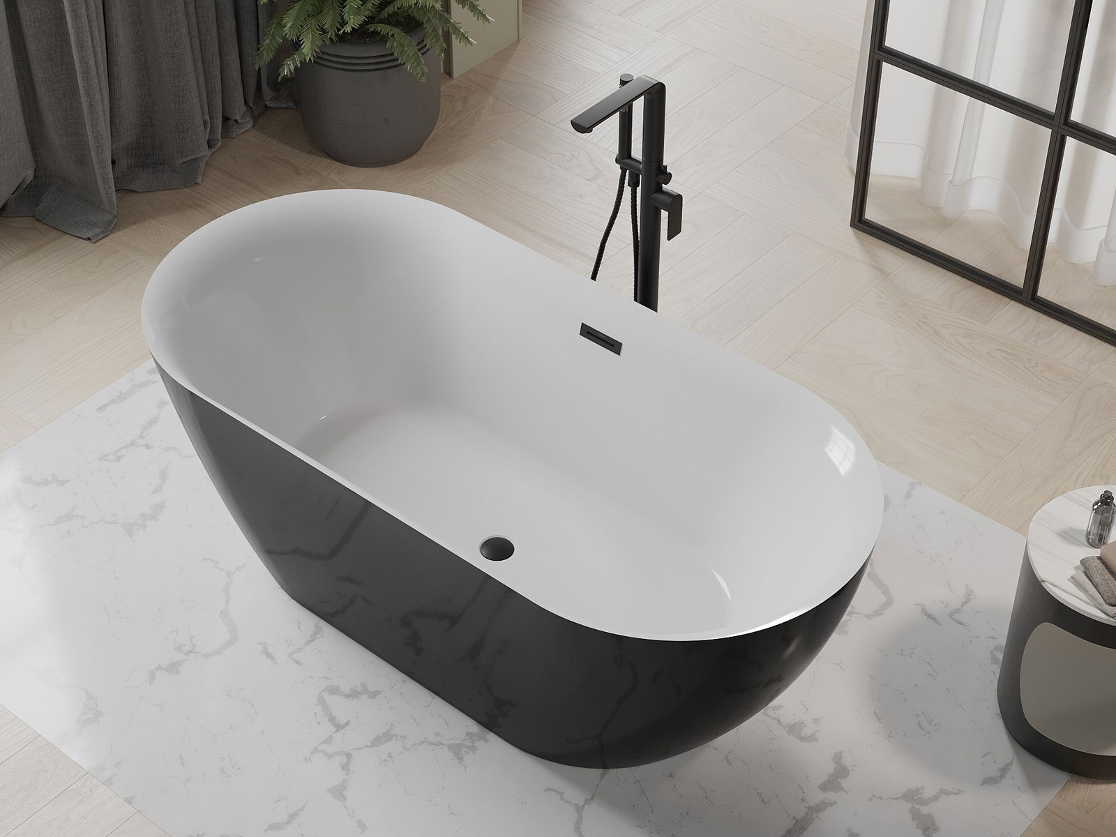 Mexen Roxy ελεύθερη μπανιέρα 170 x 80 εκ., λευκή/μαύρη, υπερχείλιση μαύρη