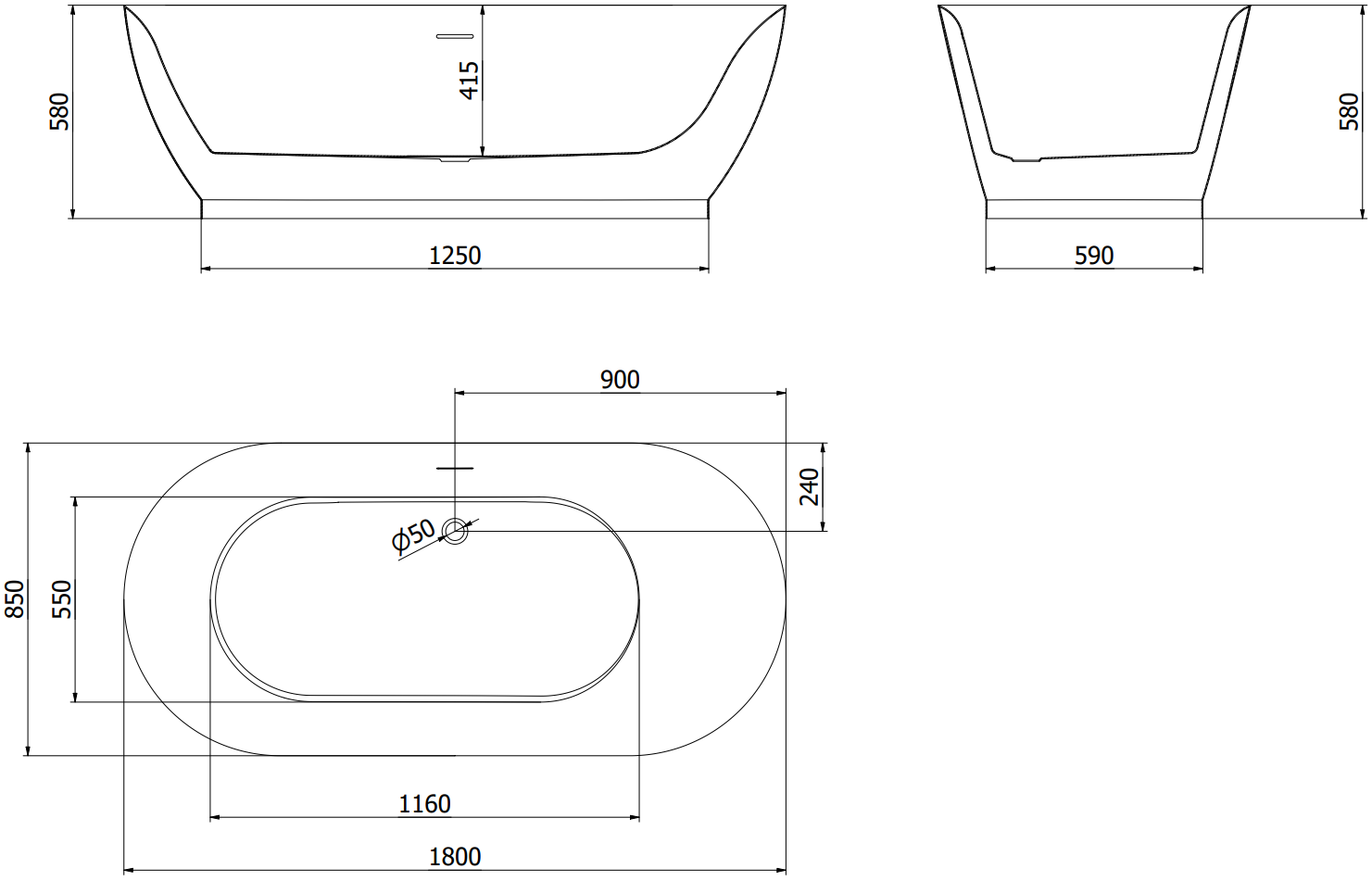 Mexen Roxy μπανιέρα ελεύθερης τοποθέτησης 180 x 85 εκ., λευκή/μαύρη,