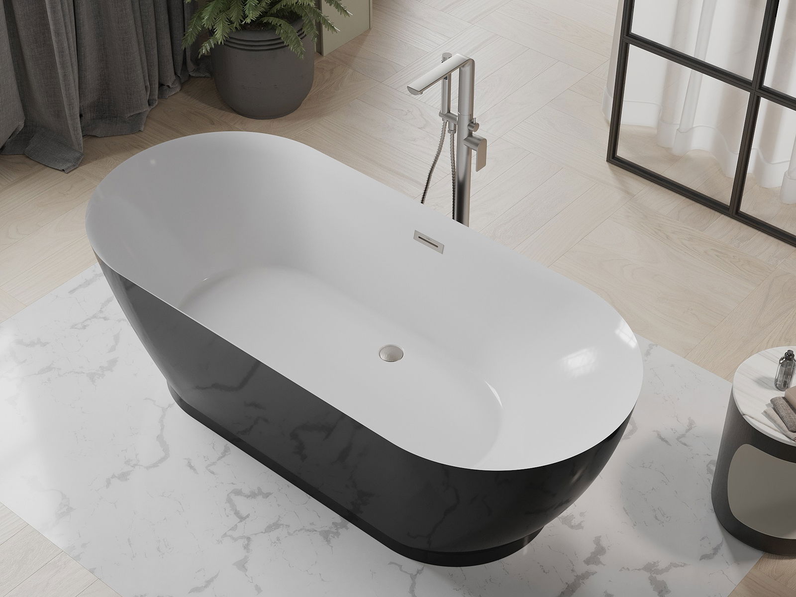 Mexen Roxy μπανιέρα ελεύθερης τοποθέτησης 180 x 85 cm, λευκή/μαύρη, με