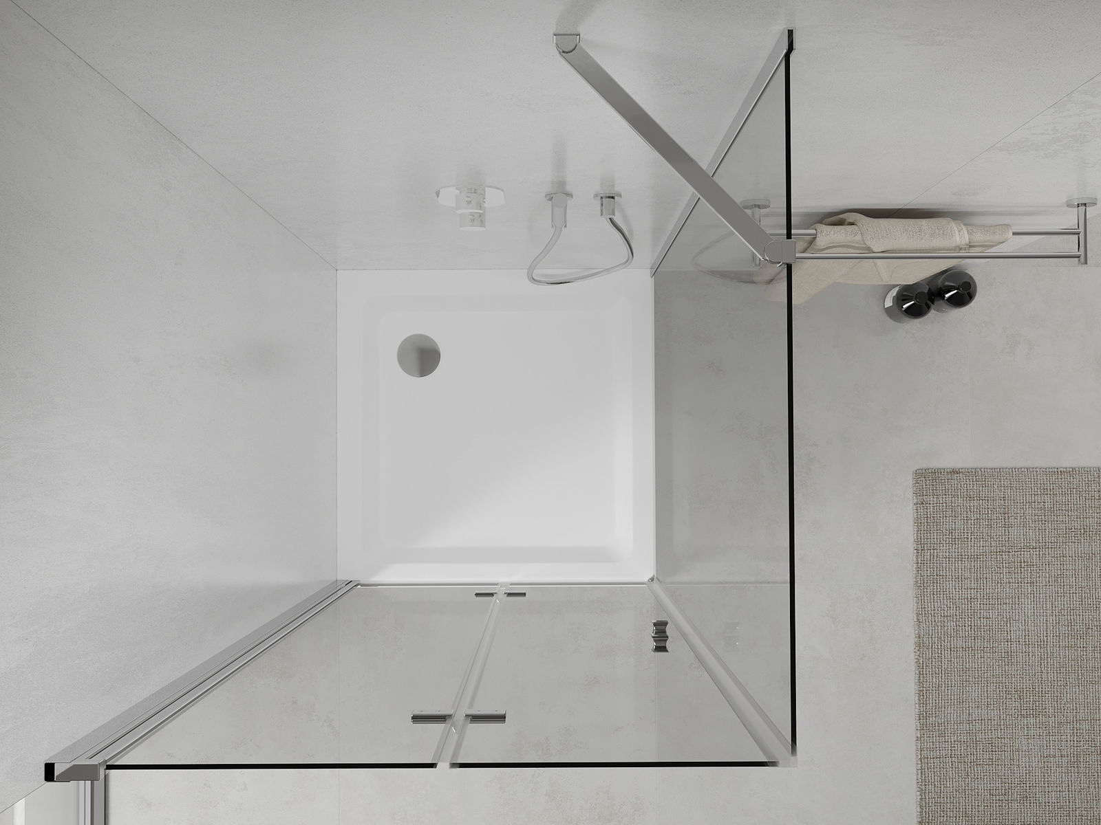 Χάρη στη χρήση ενός καθολικού συστήματος στήριξης, οι πόρτες ντους μπορούν να τοποθετηθούν είτε από τη δεξιά είτε από την αριστερή πλευρά, ανάλογα με τις ανάγκες. Έτσι μπορείτε να σχεδιάσετε με ευκολία ένα ντους προσαρμοσμένο στον χώρο του μπάνιου.