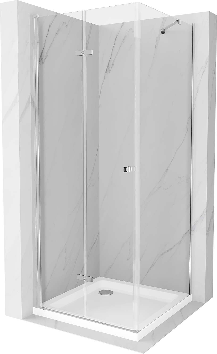Mexen Lima πτυσσόμενη καμπίνα ντους 80 x 80 cm, διάφανη, χρώμιο + ντουζιέρα Flat