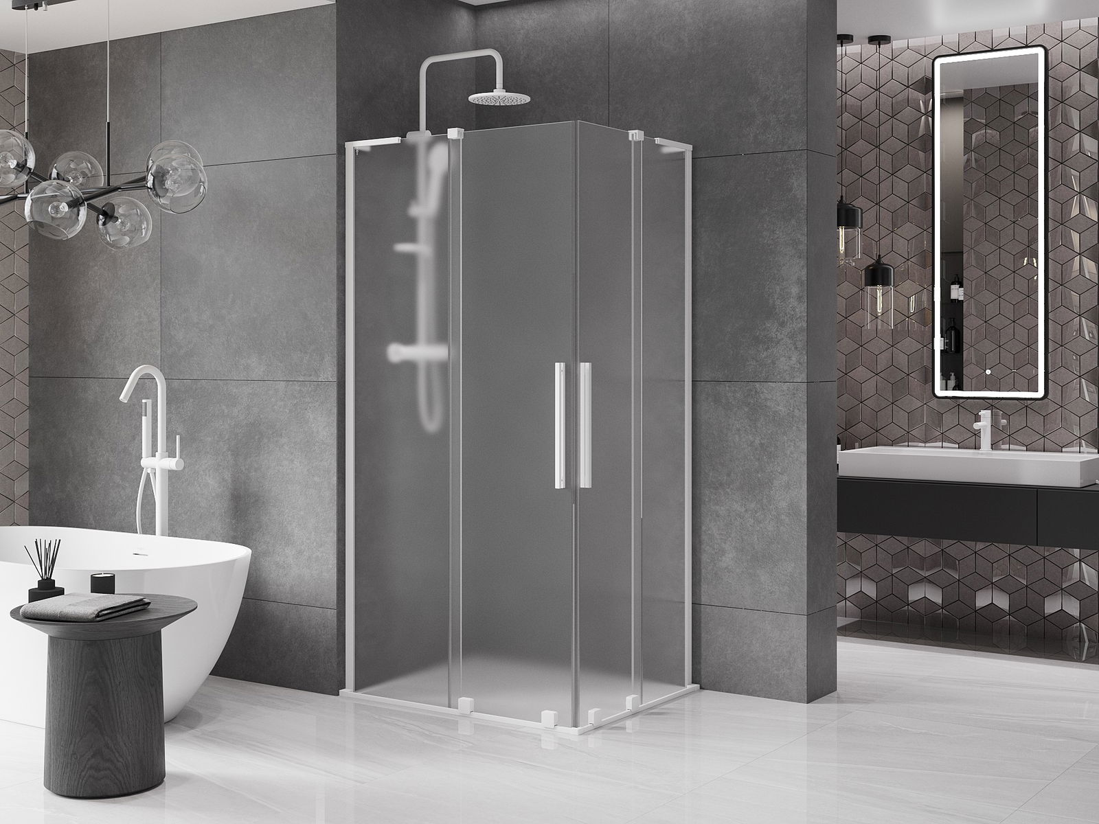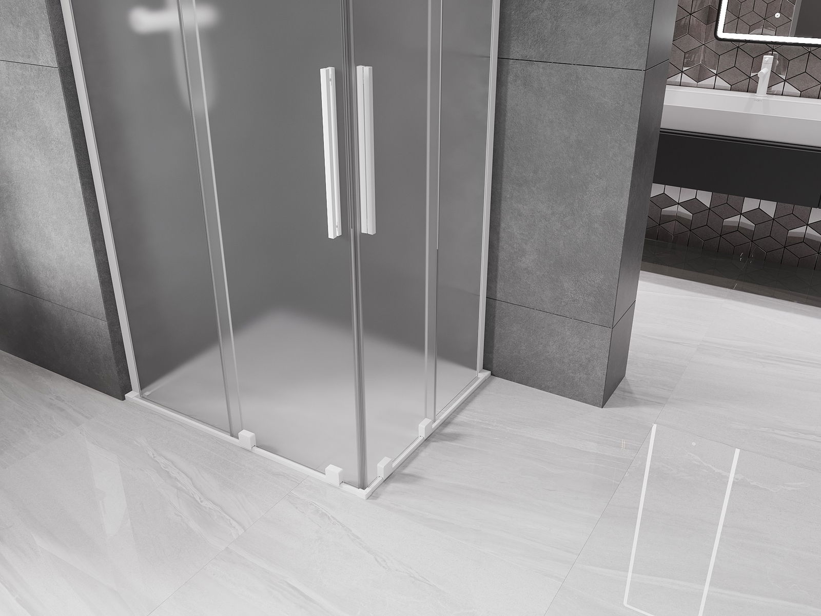 Mexen Velar L Διπλή συρόμενη καμπίνα ντους 90 x 80 cm, παγωμένο, λευκό