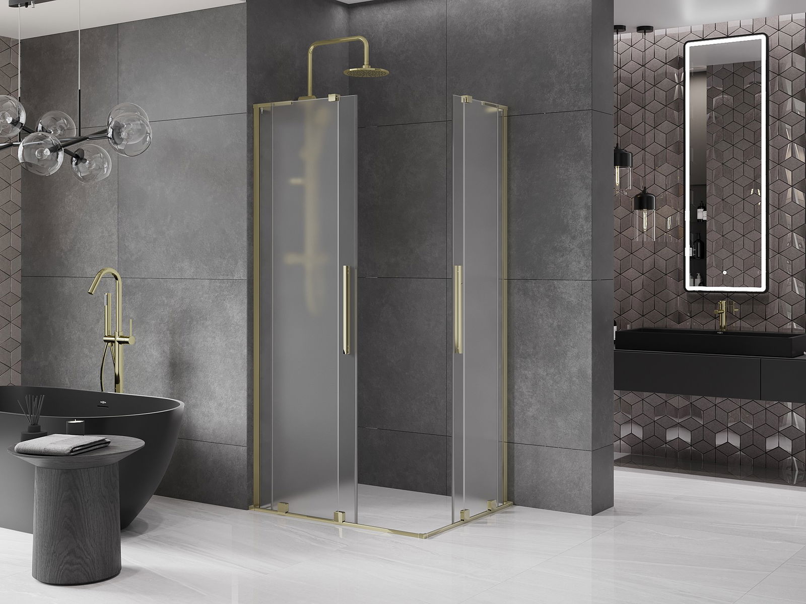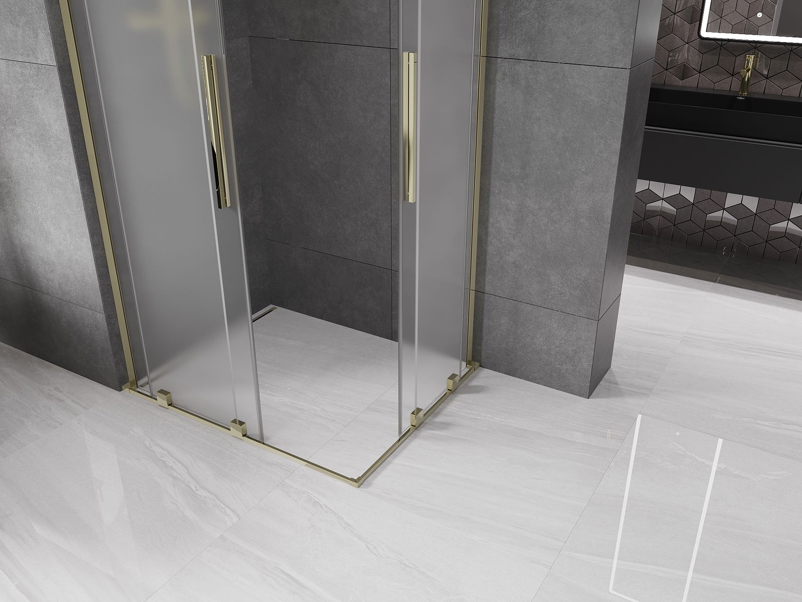 Mexen Velar L Διπλή συρόμενη καμπίνα ντους 90 x 80 cm, παγωμένο, χρυσό