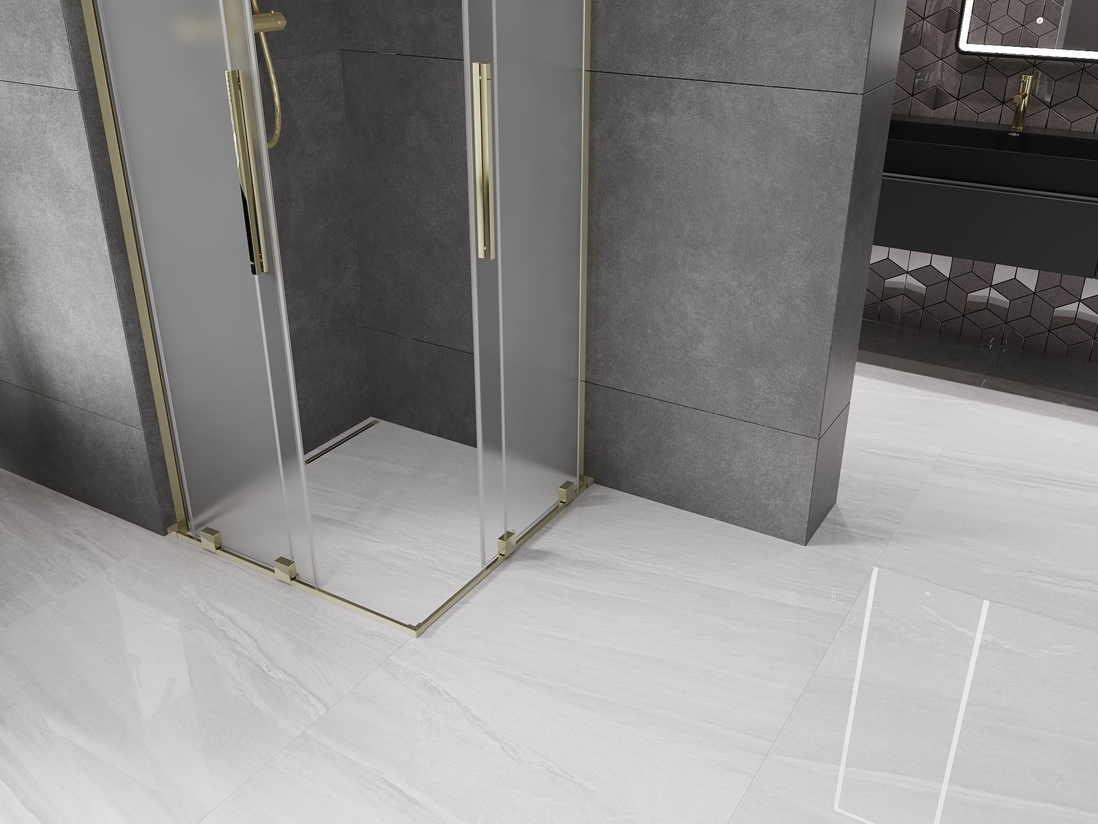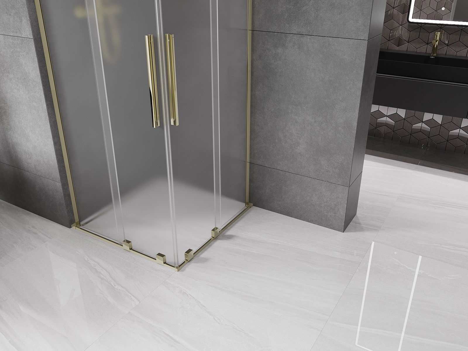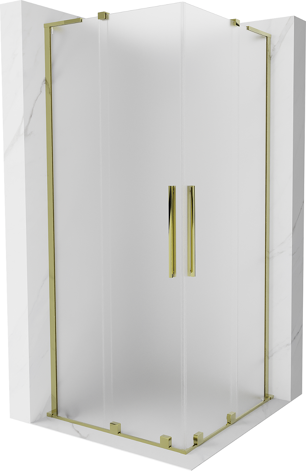 Mexen Velar L Διπλή συρόμενη καμπίνα ντους 100 x 100 cm, παγωμένο, χρυσό