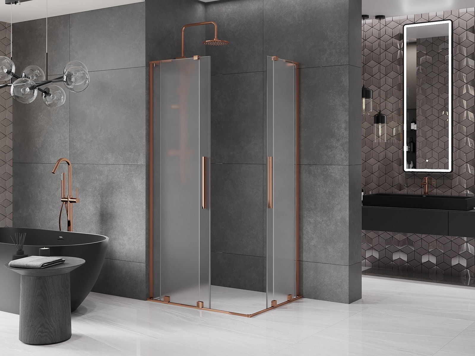Mexen Velar L Διπλή καμπίνα ντους συρόμενη 100 x 90 εκ., παγετός, ροζ χρυσό