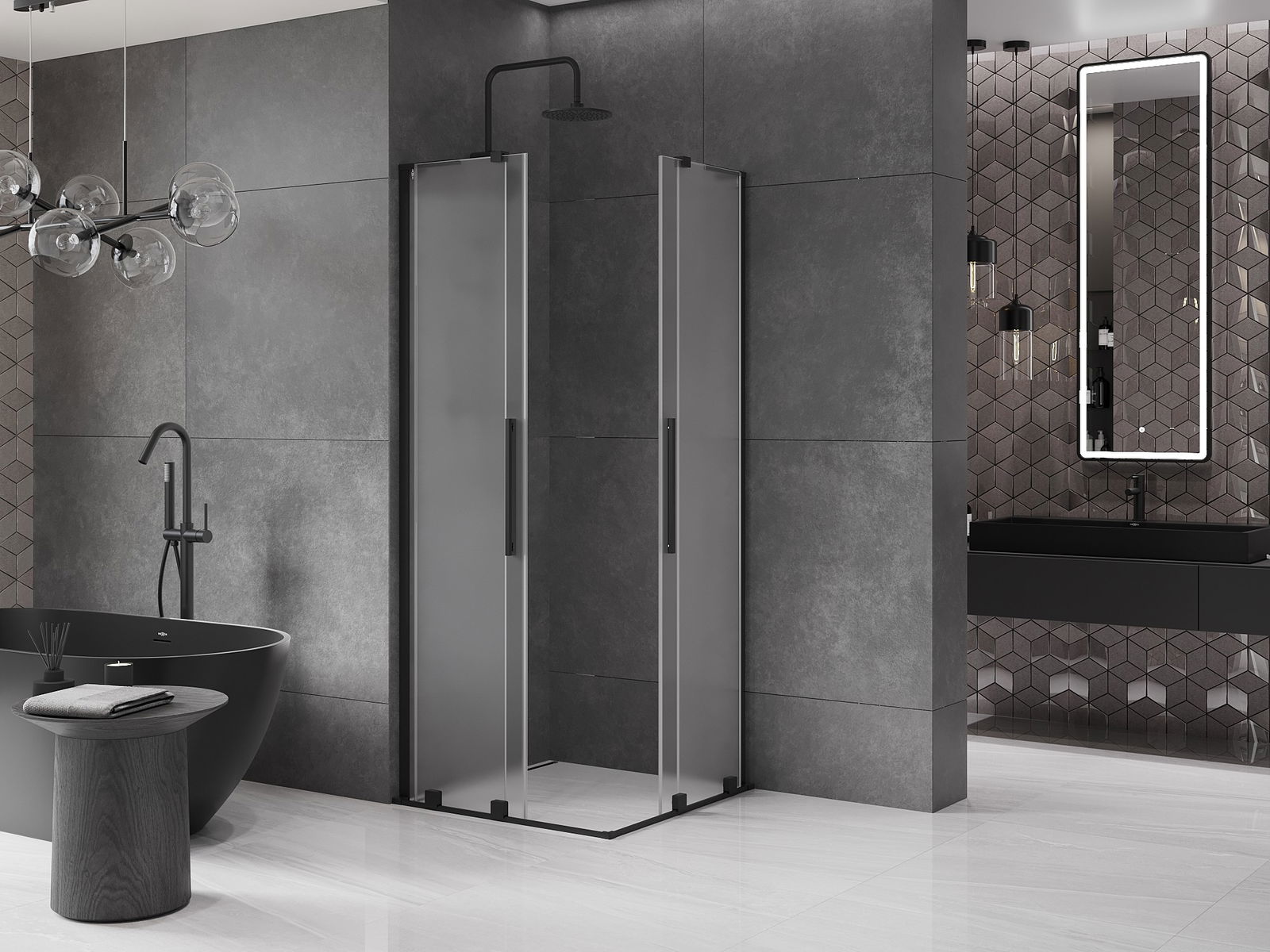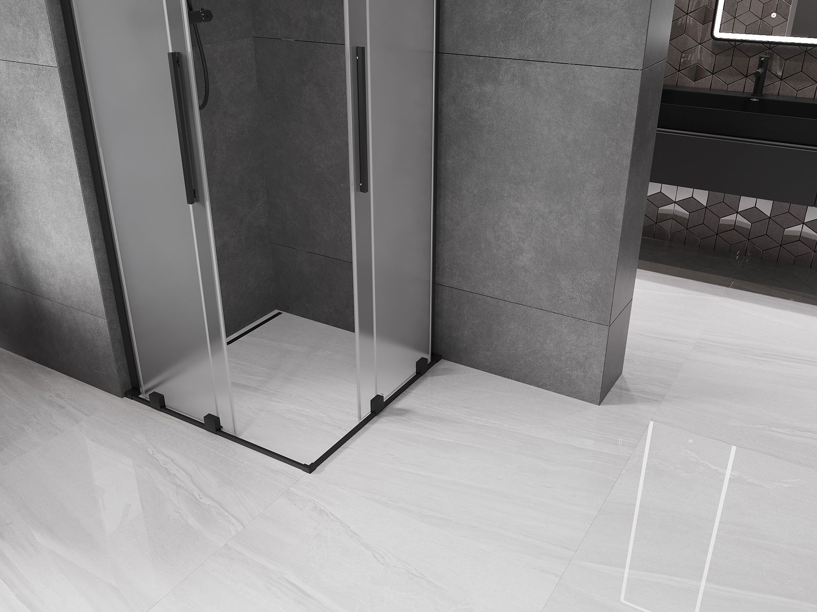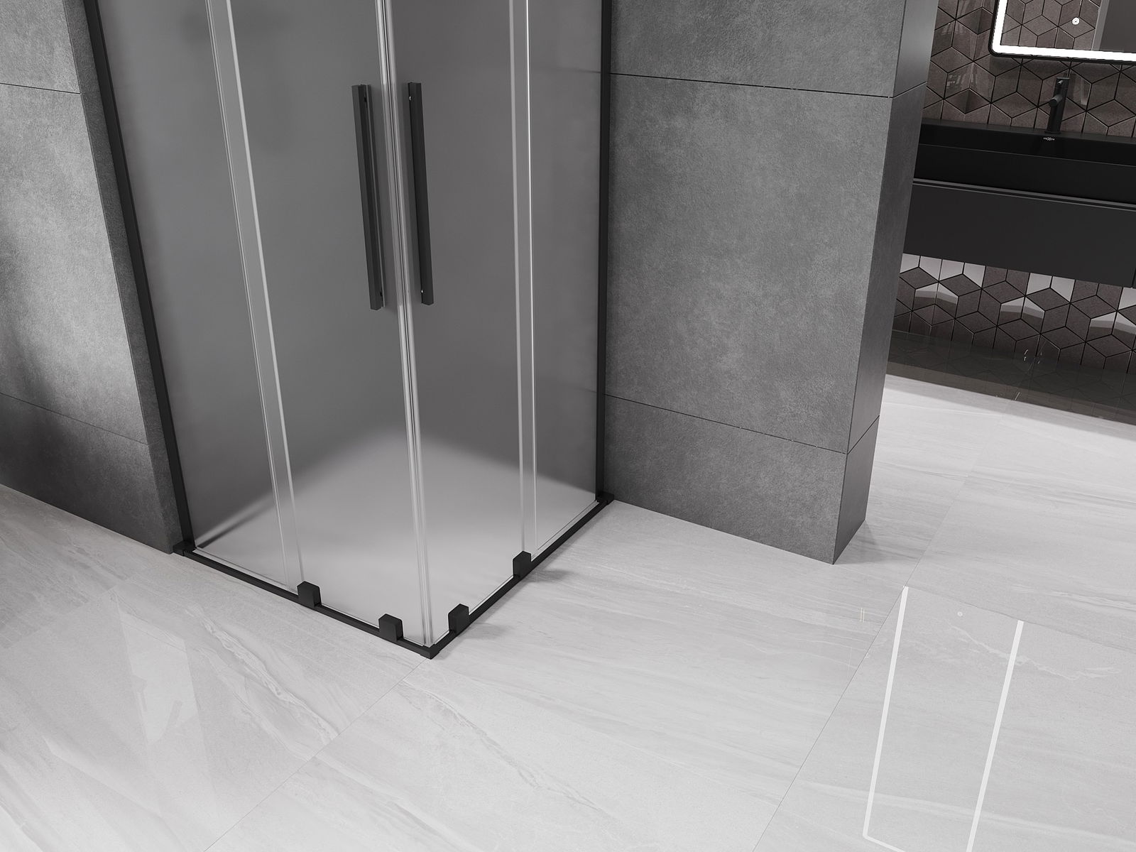 Mexen Velar L Δίαια συρόμενη καμπίνα ντους 80 x 80 cm, παγετού, μαύρη