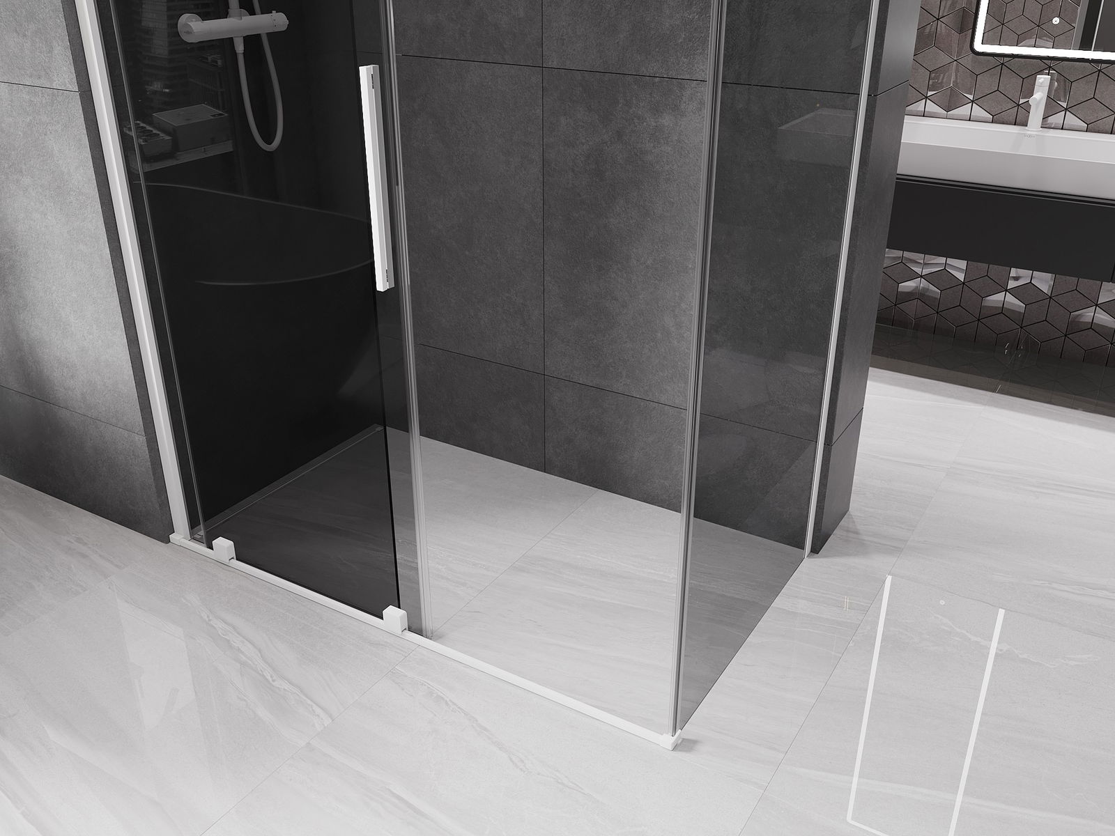 Mexen Velar συρόμενη καμπίνα ντους 130 x 75 cm, γραφίτης, λευκή - 871-130-075-41-20