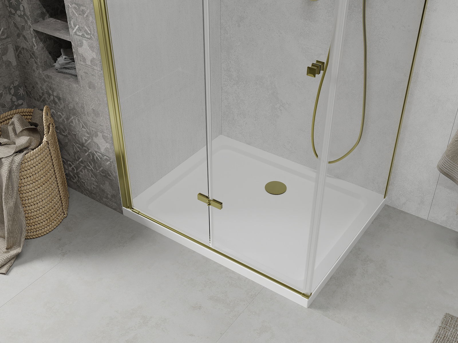 Mexen Lima πτυσσόμενη καμπίνα ντους 70 x 80 εκ., διάφανη, χρυσή + ντουζιέρα Flat