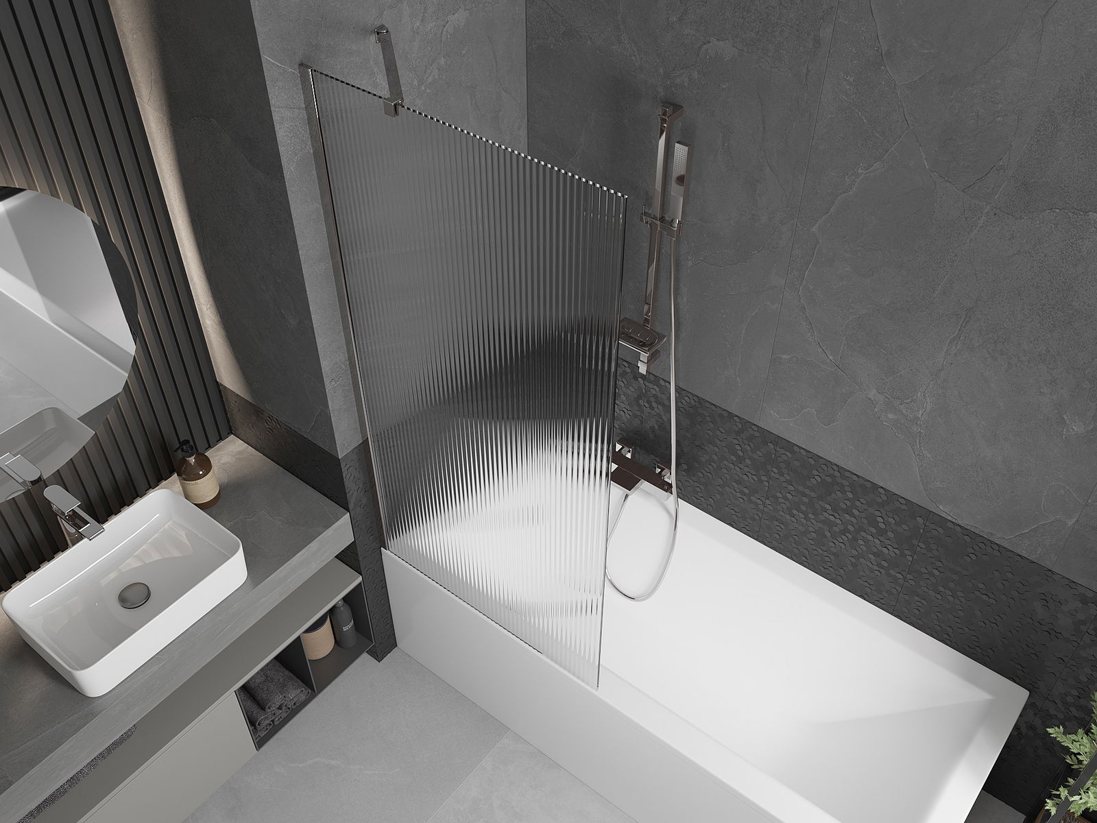 Mexen Next παραβάν μπανιέρας 1 πτερύγιο 80 x 150 cm, ρίγες, χρώμιο - 895-080-000-00-09-01