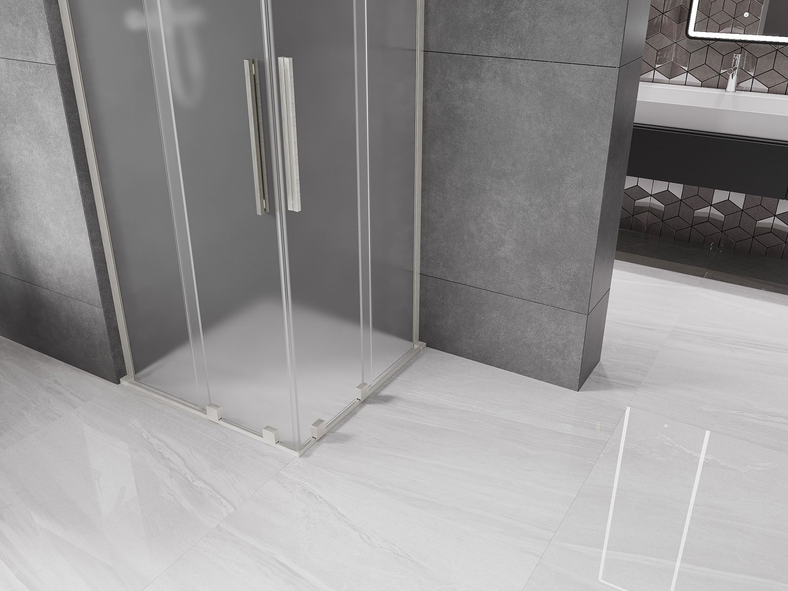 Mexen Velar L Διπλό συρόμενο ντους 100 x 100 cm, πάχνη, βουρτσισμένο νικέλιο
