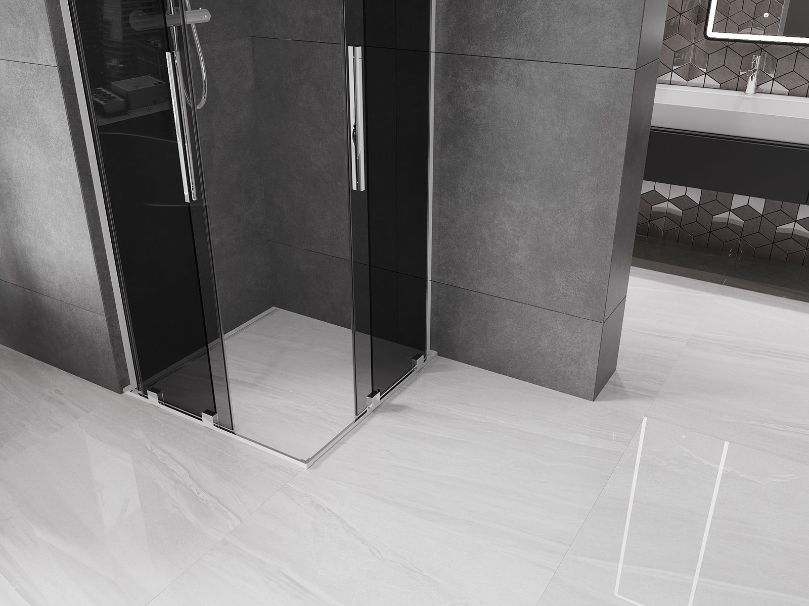 Mexen Velar L Διπλή συρόμενη καμπίνα ντους 80 x 80 cm, γραφίτης, χρώμιο