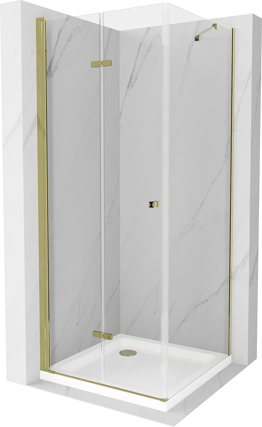 Mexen Lima πτυσσόμενη καμπίνα ντους 90 x 90 cm, διάφανο, χρυσό + ντουζιέρα Flat