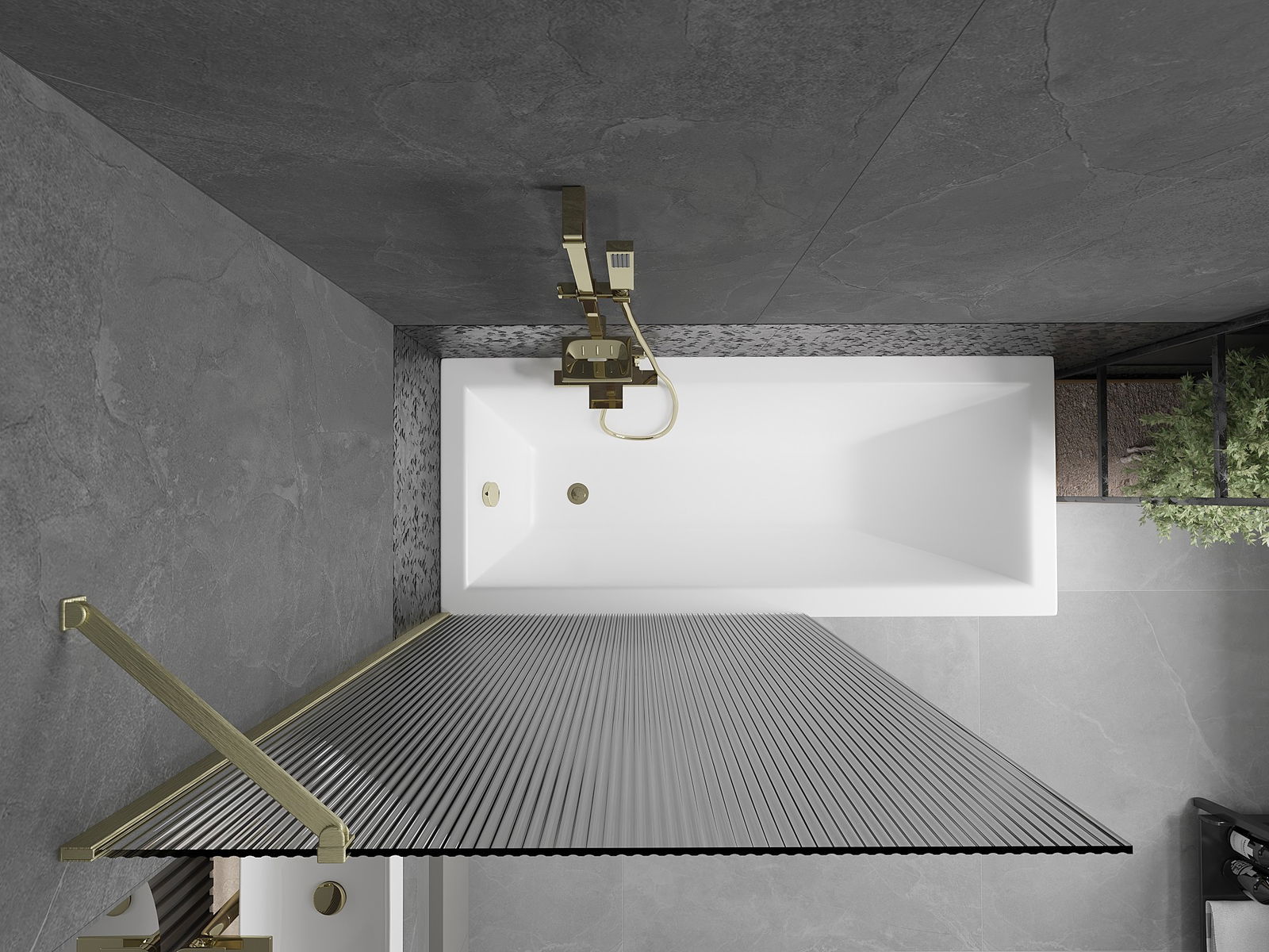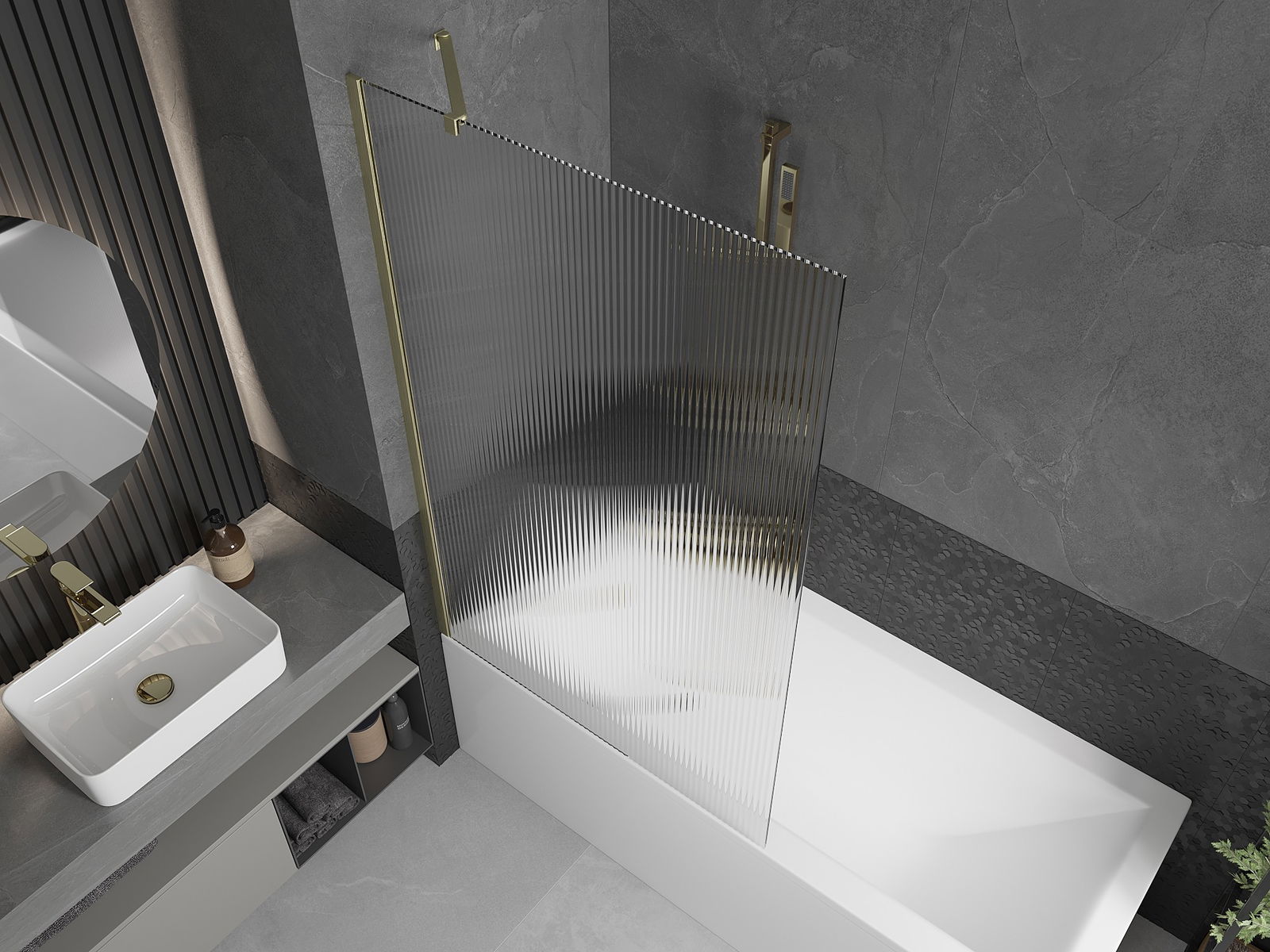 Mexen Next παραβάν μπάνιου 1 φύλλου 100 x 150 cm, ρίγες, χρυσό βουρτσισμένο