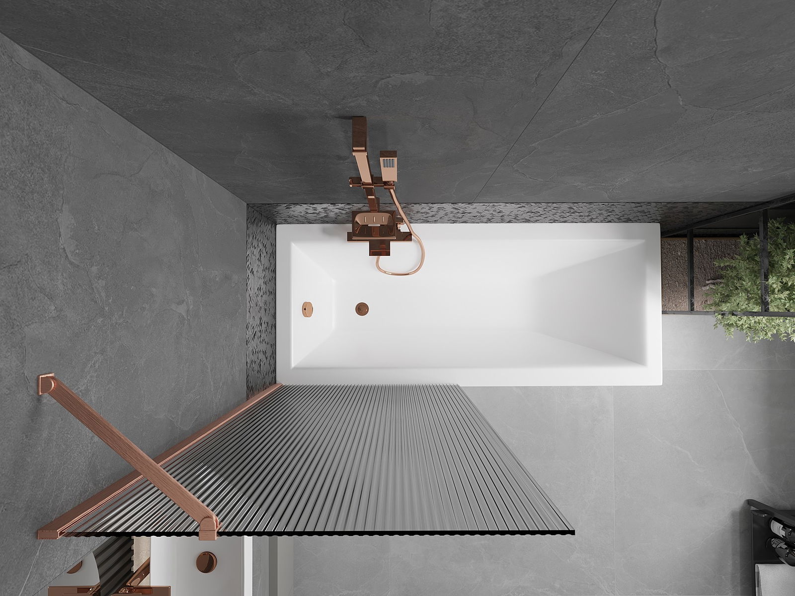 Mexen Next παραβάν μπάνιου 1-πτυσσόμενο 80 x 150 εκ., ρίγες, βουρτσισμένο χαλκό