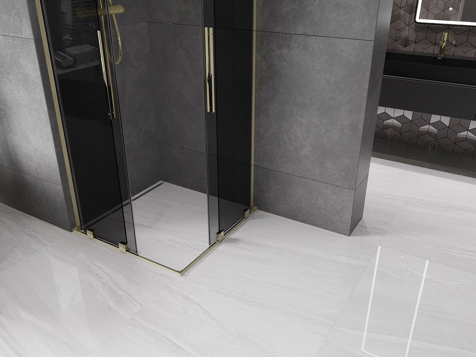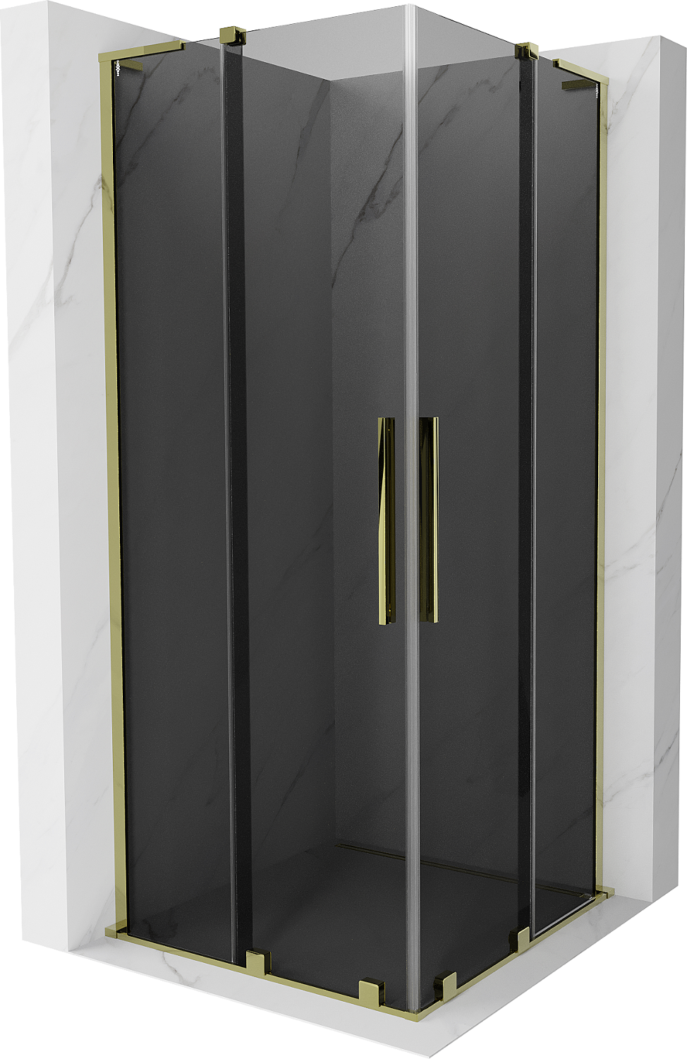 Mexen Velar L Ντουζιέρα διπλής καμπίνας συρόμενη 80 x 80 cm, γραφίτης, χρυσή