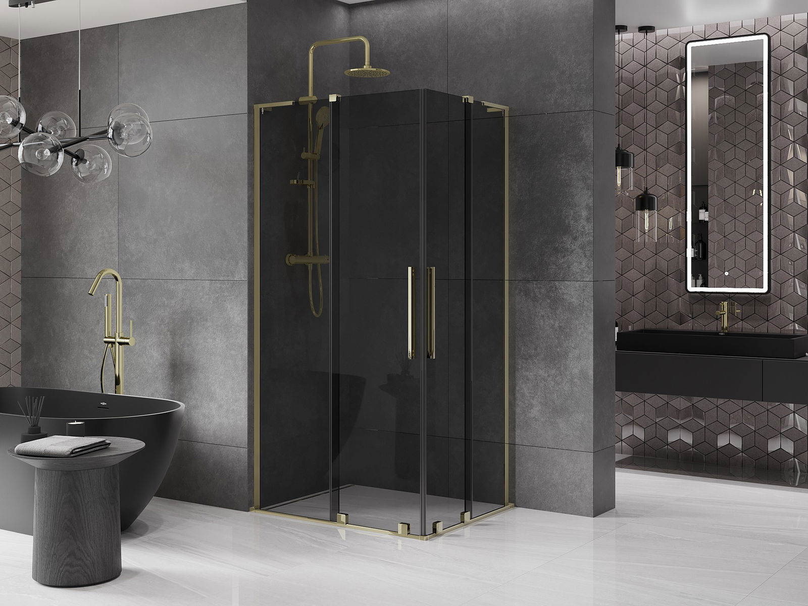 Mexen Velar L Διπλή συρόμενη καμπίνα ντους 90 x 80 εκ., γραφίτης, χρυσό