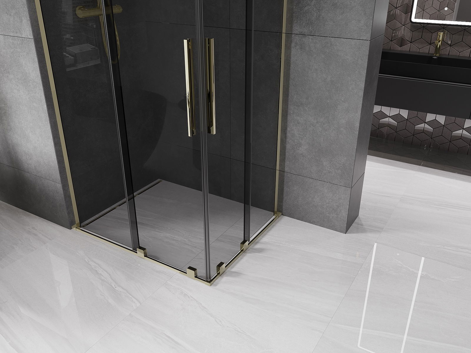 Mexen Velar L Διπλή συρόμενη καμπίνα ντους 100 x 90 εκ., γραφίτης, χρυσό