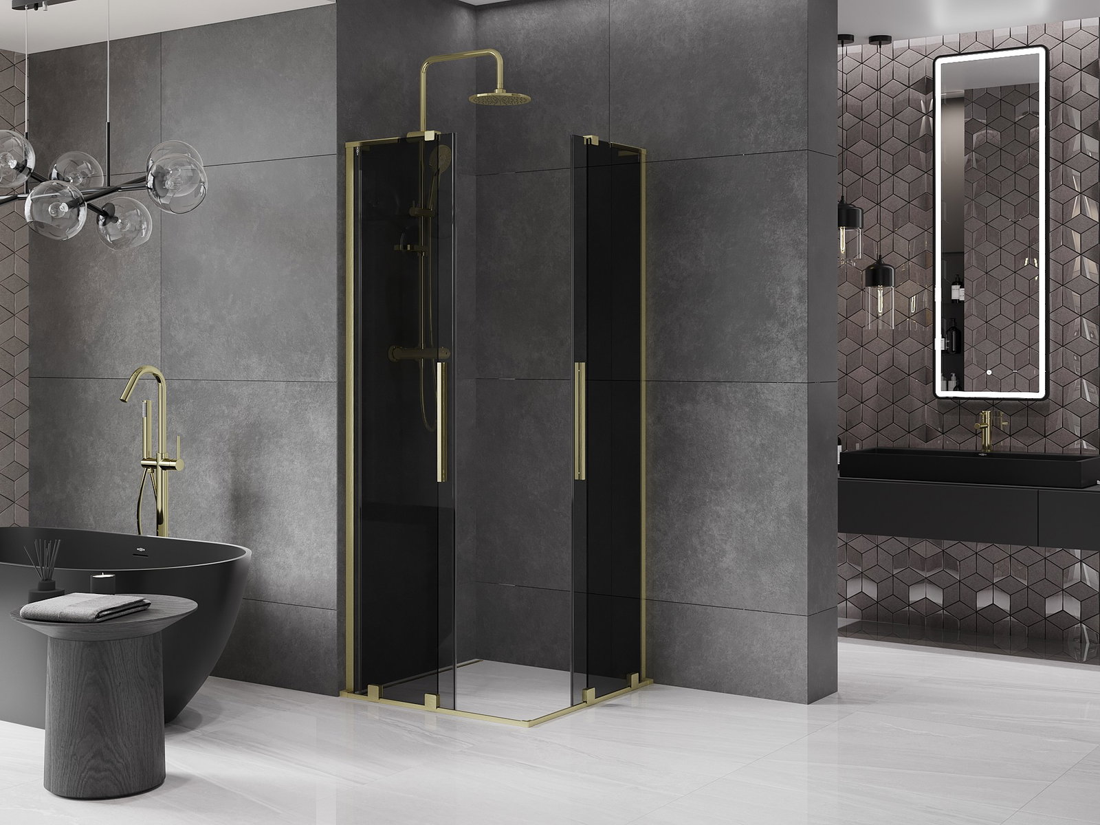 Mexen Velar L Δίδυμη συρόμενη ντουζιέρα 80 x 80 cm, γραφίτης, χρυσό ματ