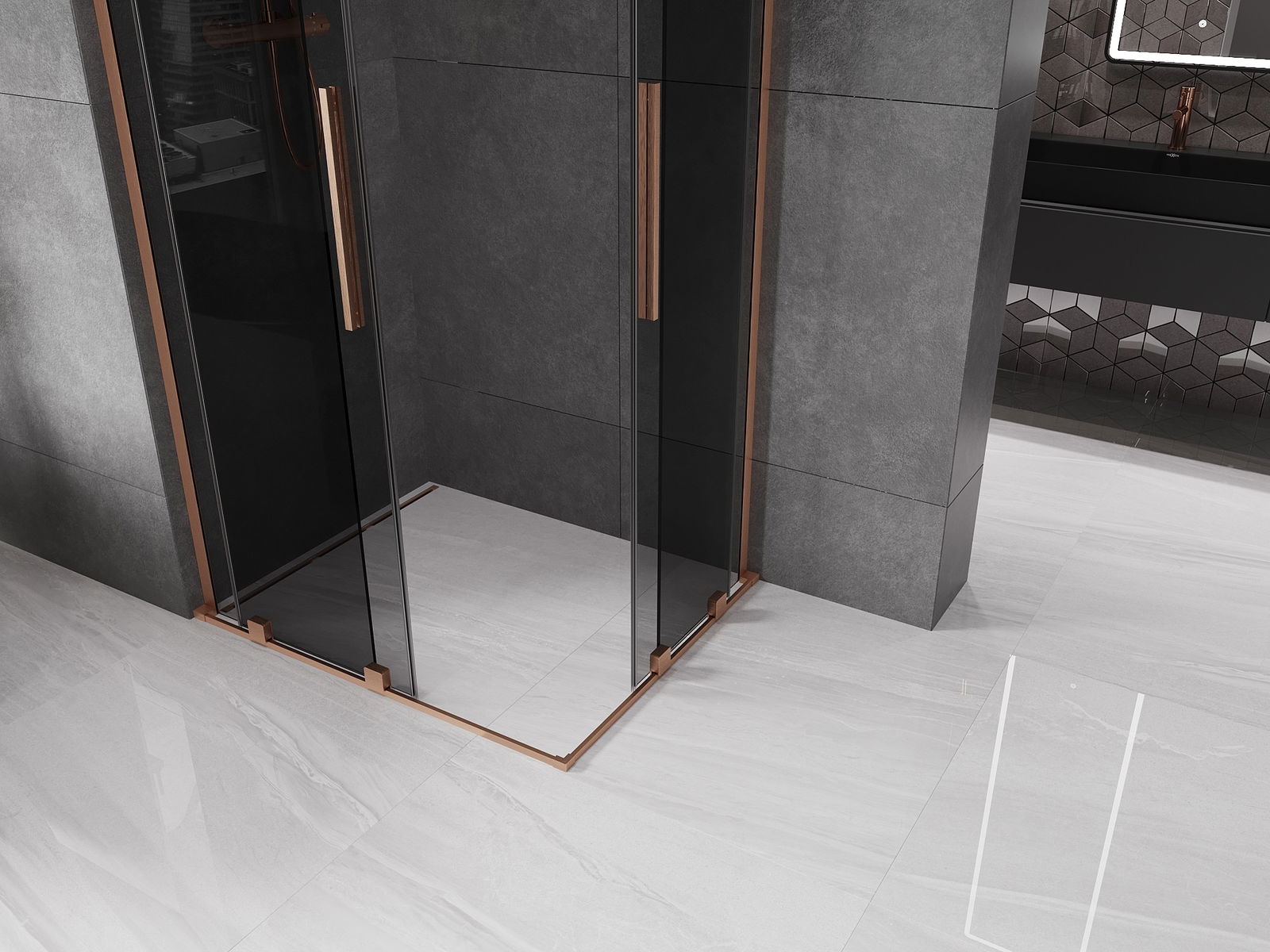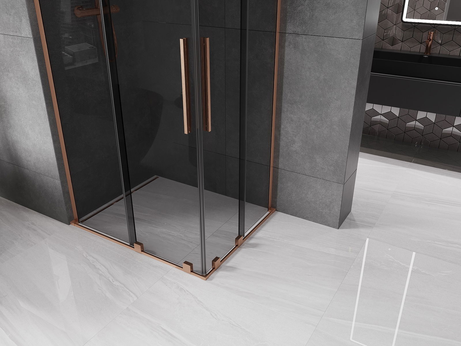 Mexen Velar L Δίδυμη συρόμενη καμπίνα ντους 100 x 90 cm, γραφίτης, βουρτσισμένο