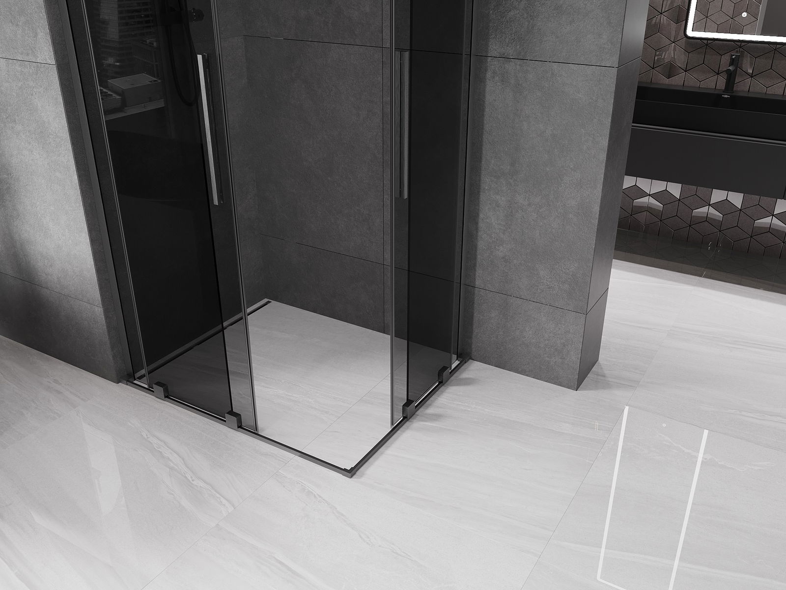 Mexen Velar L Διπλή συρόμενη καμπίνα ντους 90 x 80 εκ., γραφίτης, βουρτσισμένο