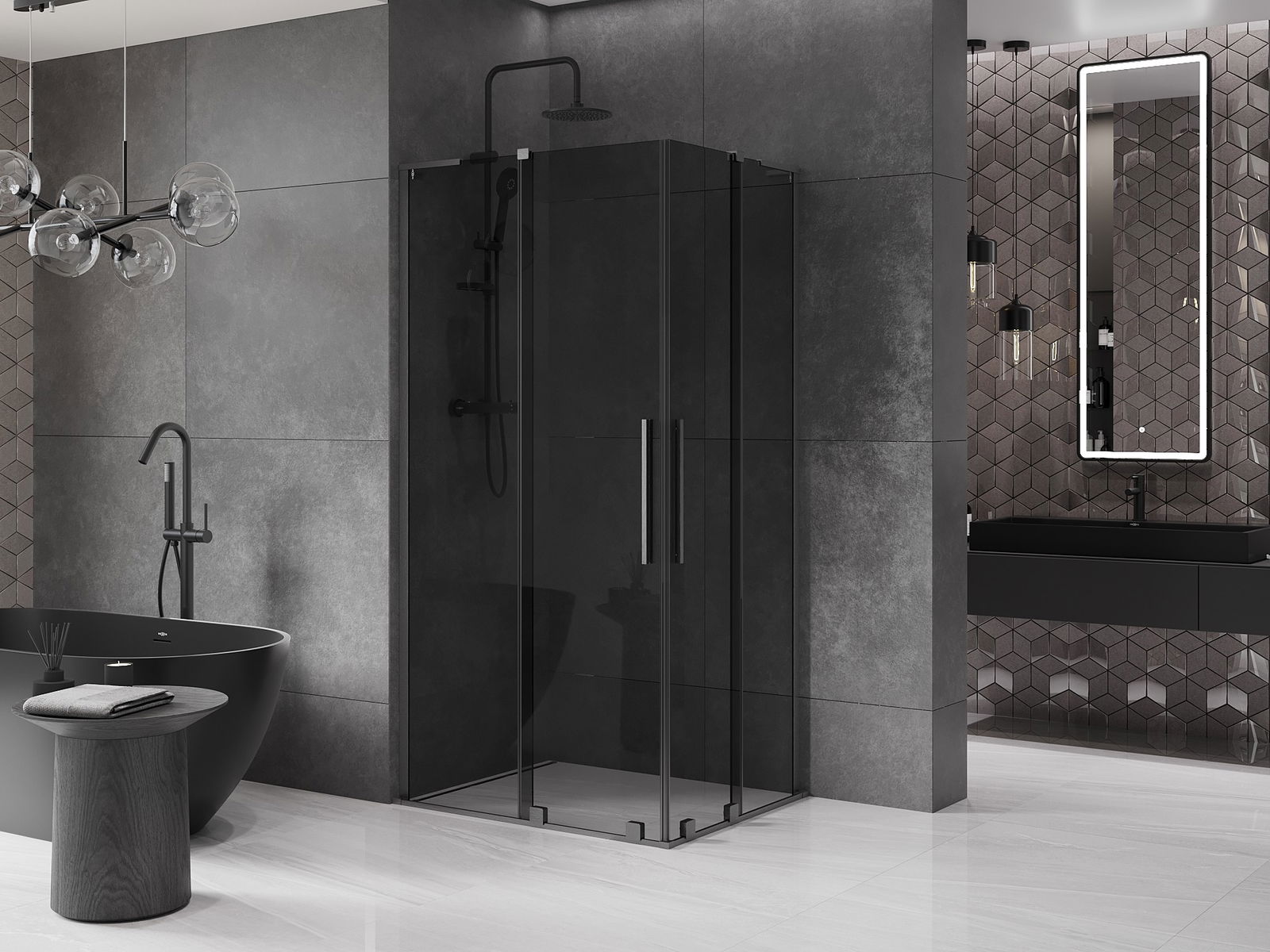 Mexen Velar L Δίδυμη καμπίνα ντους συρόμενη 100 x 90 cm, γραφίτης, βουρτσισμένο