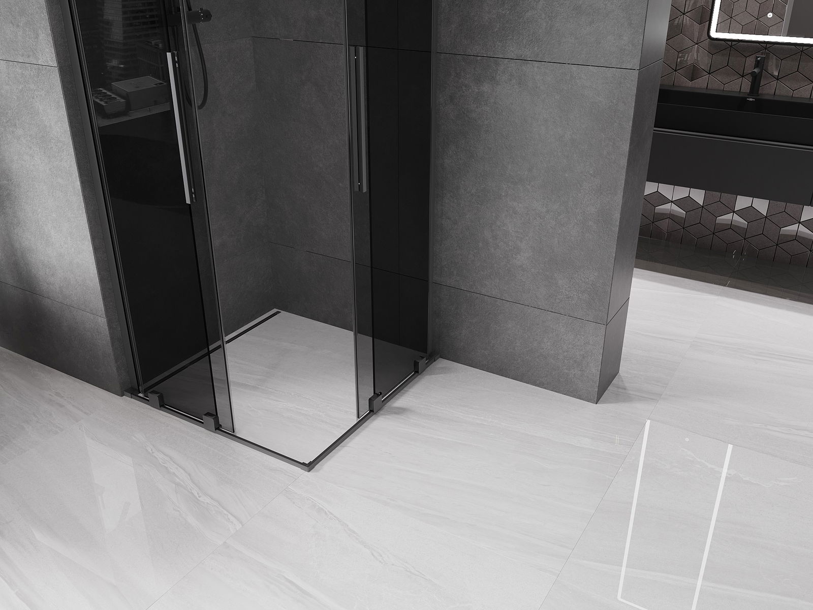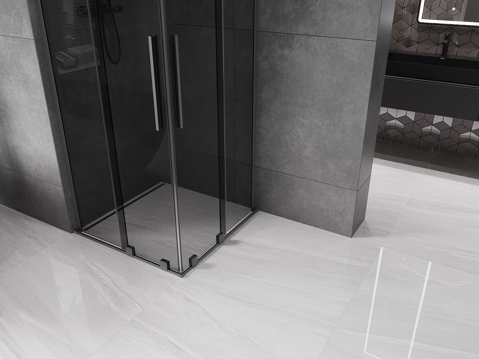 Mexen Velar L Διπλή συρόμενη ντουζιέρα 90 x 90 cm, γραφίτης, μεταλλικό γκρι