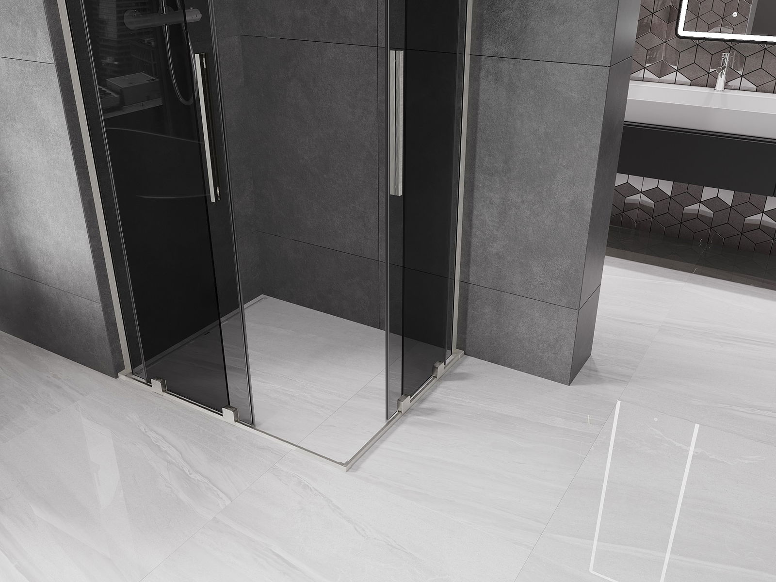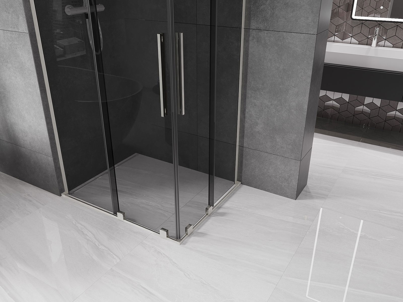 Mexen Velar L Διπλή συρόμενη καμπίνα ντους 90 x 80 cm, γραφίτης, βουρτισμένο