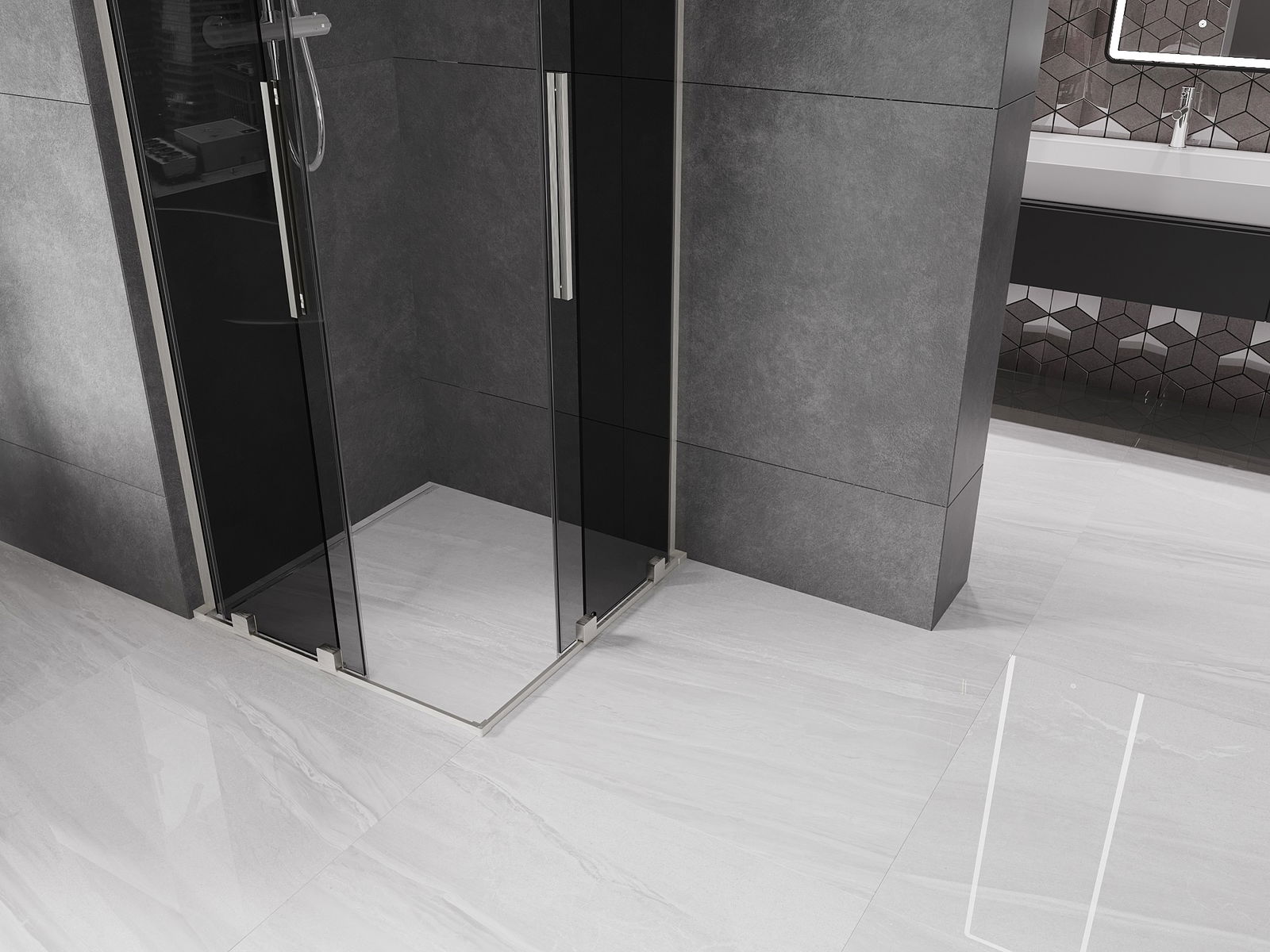 Χάρη στη χρήση ενός καθολικού συστήματος στήριξης, οι πόρτες ντους μπορούν να τοποθετηθούν είτε από τη δεξιά είτε από την αριστερή πλευρά, ανάλογα με τις ανάγκες. Έτσι μπορείτε να σχεδιάσετε με ευκολία ένα ντους προσαρμοσμένο στον χώρο του μπάνιου.