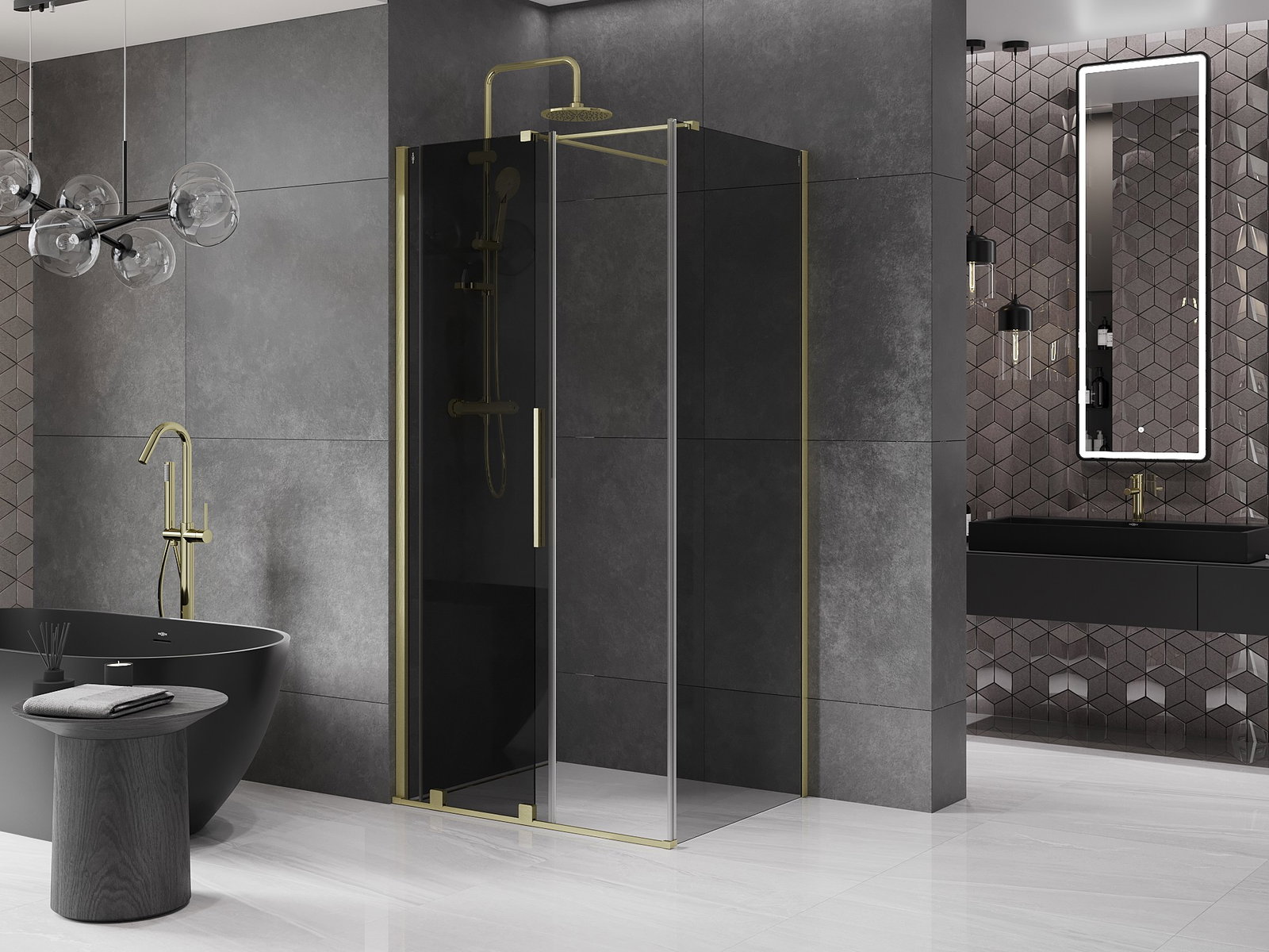 Mexen Velar συρόμενη καμπίνα ντους 100 x 80 cm, γραφίτης, χρυσό βουρτσισμένο