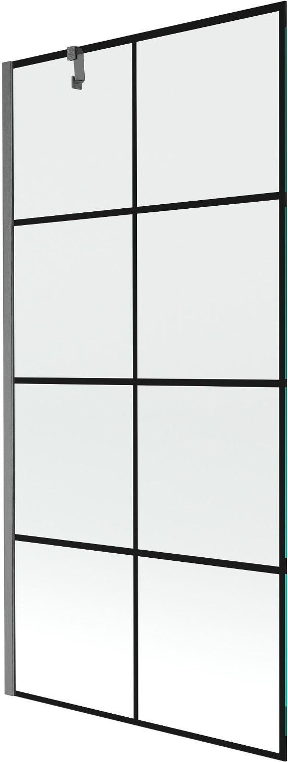Mexen Next παραβάν μπάνιου 1-πτύχης 90 x 150 cm, μαύρο καρό, βουρτσισμένο γκρι
