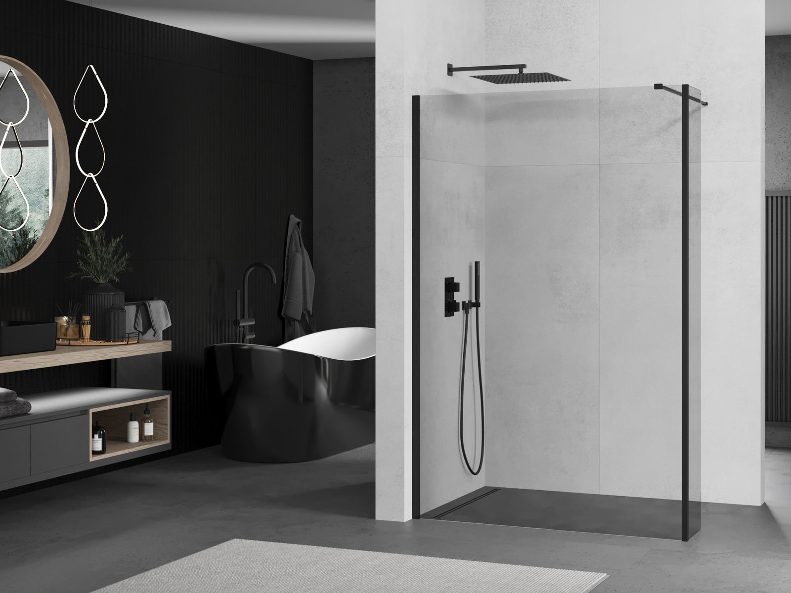 Mexen Kioto πλάκα ντους Walk-in 140 x 40 cm, διαφανής, μαύρη - 800-140-212-70-00-040