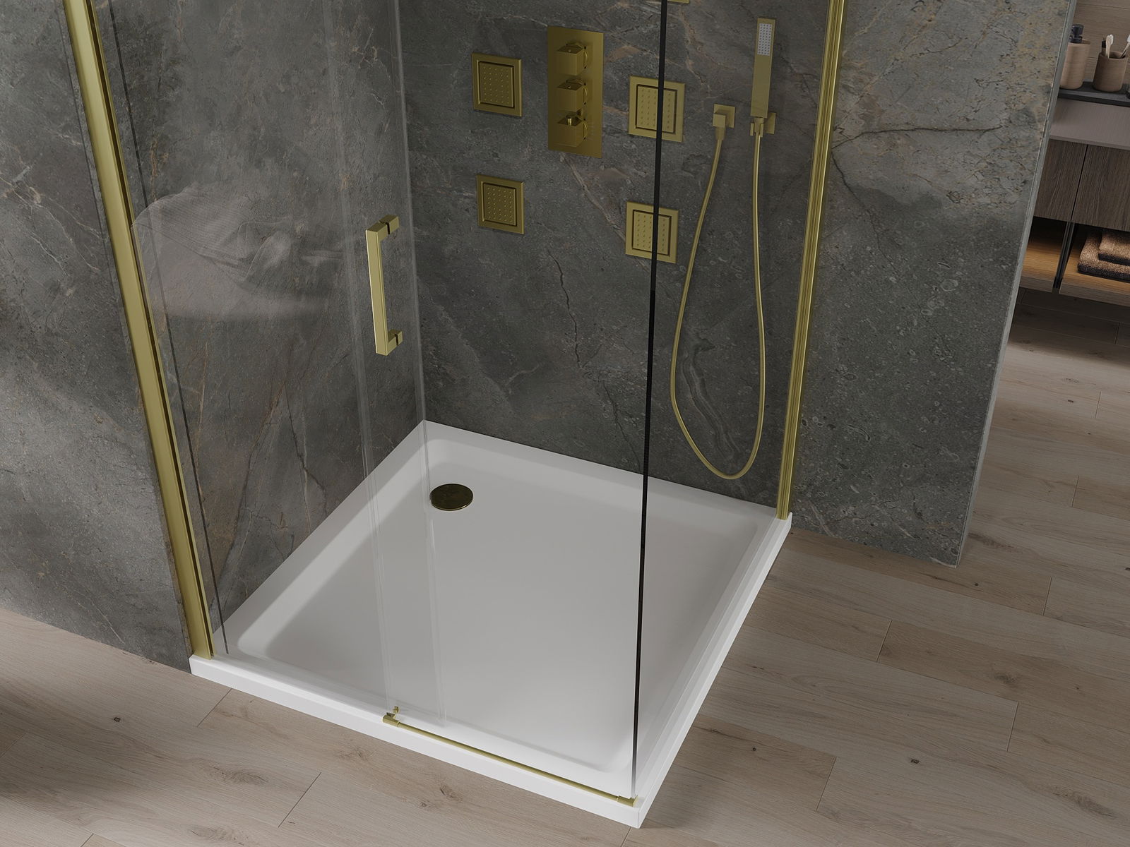 Mexen Omega συρόμενη καμπίνα ντους 100 x 100 εκ., διαφανής, χρυσή + πλατφόρμα Flat