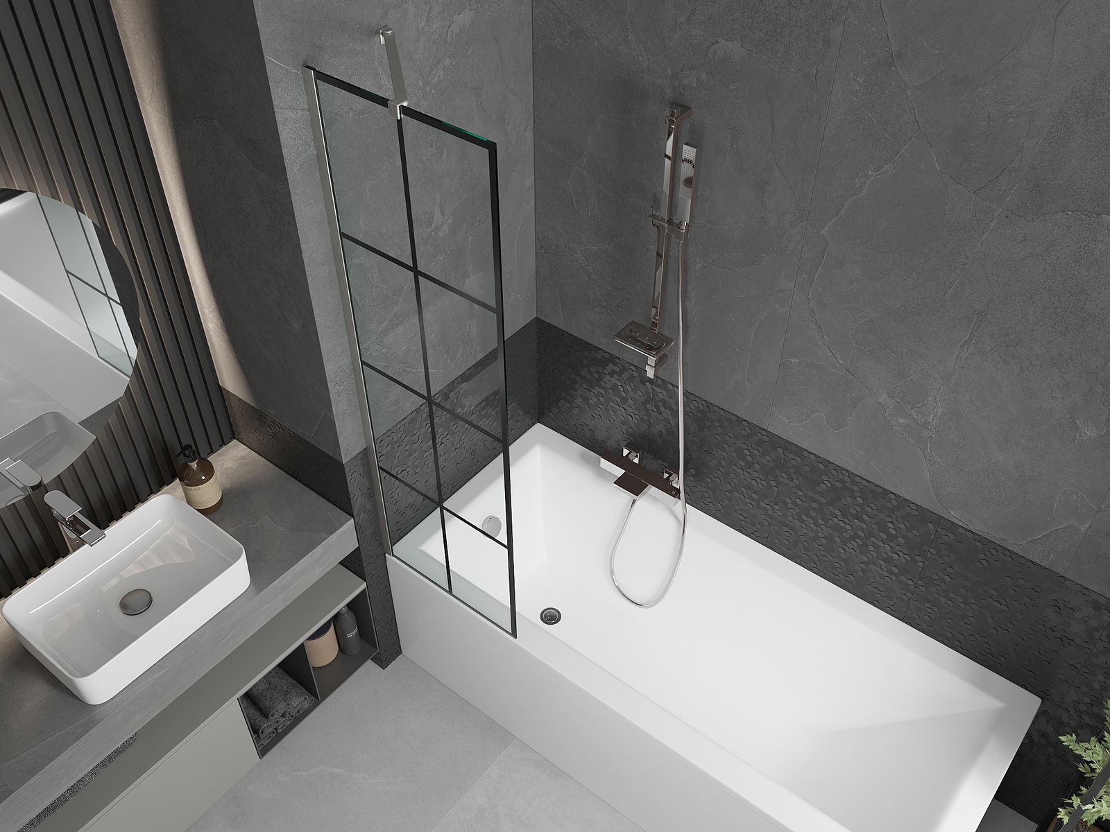 Mexen Next Πτυσσόμενο παραβάν μπάνιου 1 φύλλου 50 x 150 εκ., μαύρη καρό,