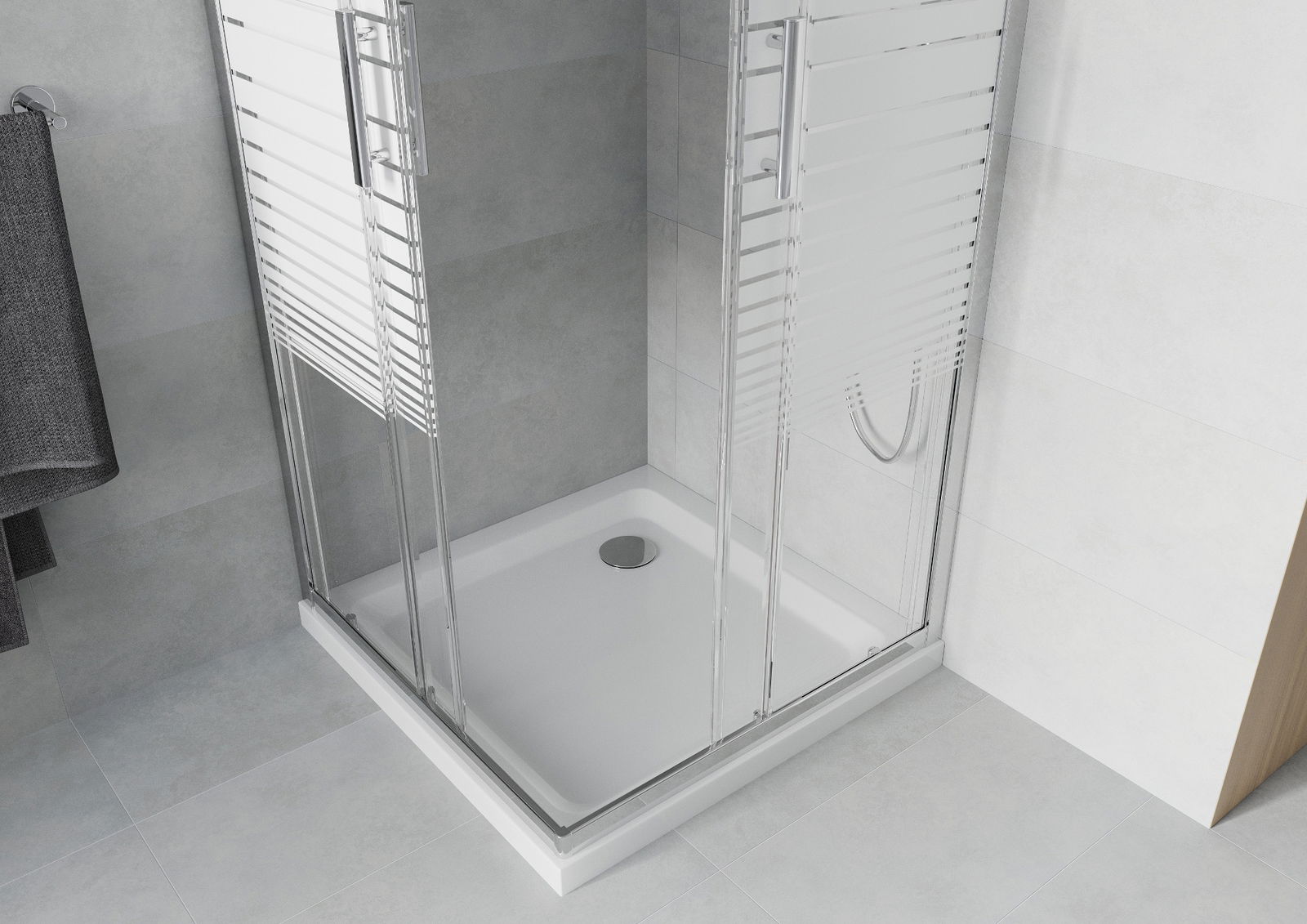 Η πρακτική και άνετη λαβή κατασκευάζεται από ανθεκτικό και αντοχής μέταλλο. Ο μοντέρνος σχεδιασμός σε συνδυασμό με το φινίρισμα που ταιριάζει με το χρώμα των προφίλ προσδίδει στο σύνολο μια σύγχρονη και κομψή εμφάνιση, τονίζοντας την αισθητική κάθε μπάνιου.
