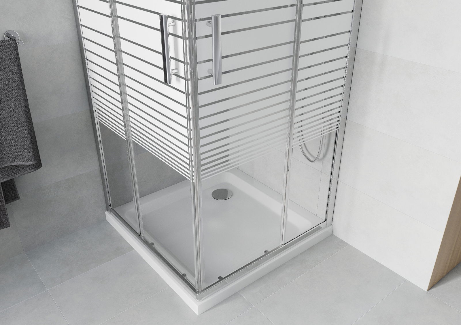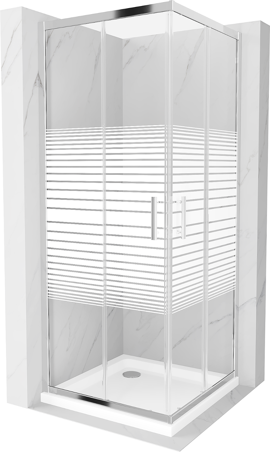 Mexen Rio τετράγωνη ντουζιέρα 70 x 70 εκ., λευκές ρίγες, χρώμιο + επίπεδη βάση,