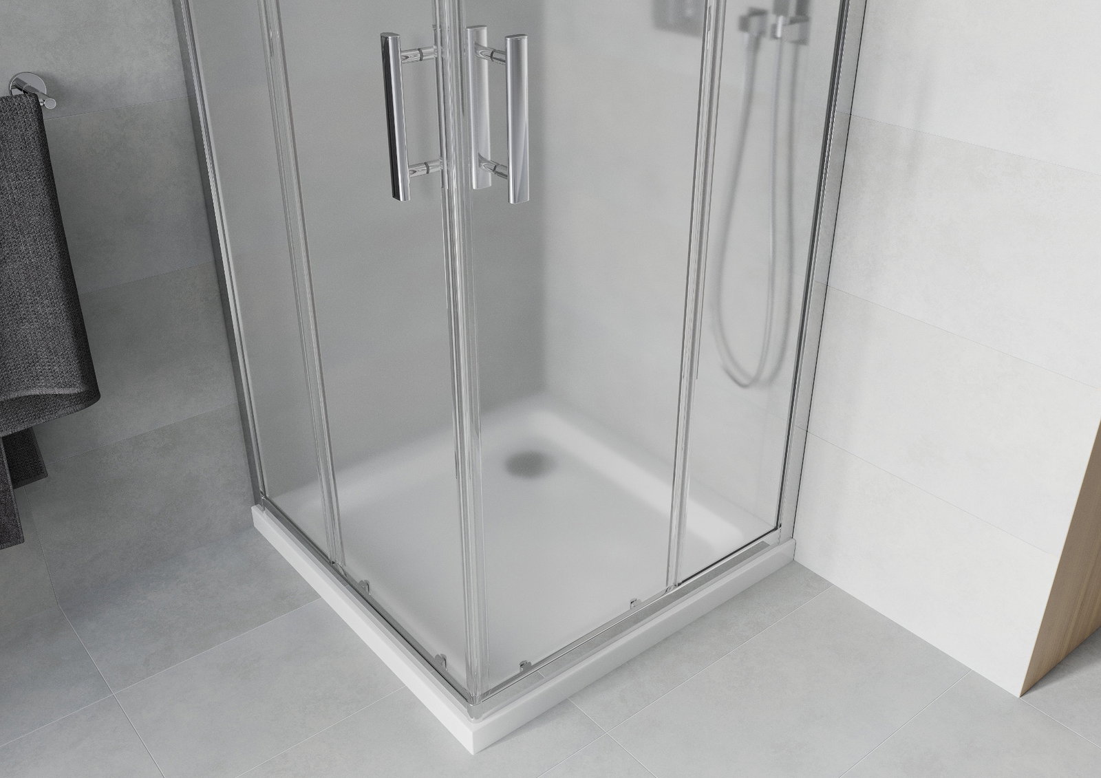Mexen Rio τετράγωνη καμπίνα ντους 90 x 90 cm, ματ, χρώμιο + καμπίνα Flat, λευκό