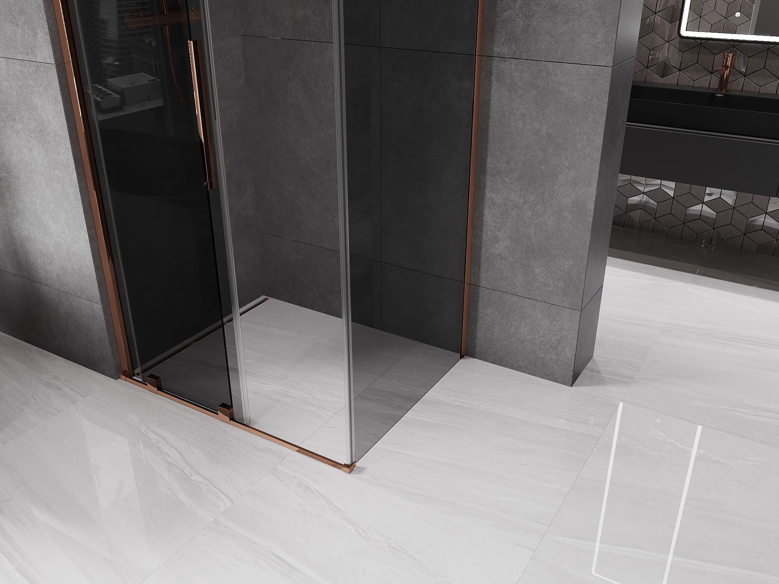 Mexen Velar συρόμενη ντουζιέρα 120 x 110 cm, γραφίτης, ροζ χρυσό - 871-120-110-41-60