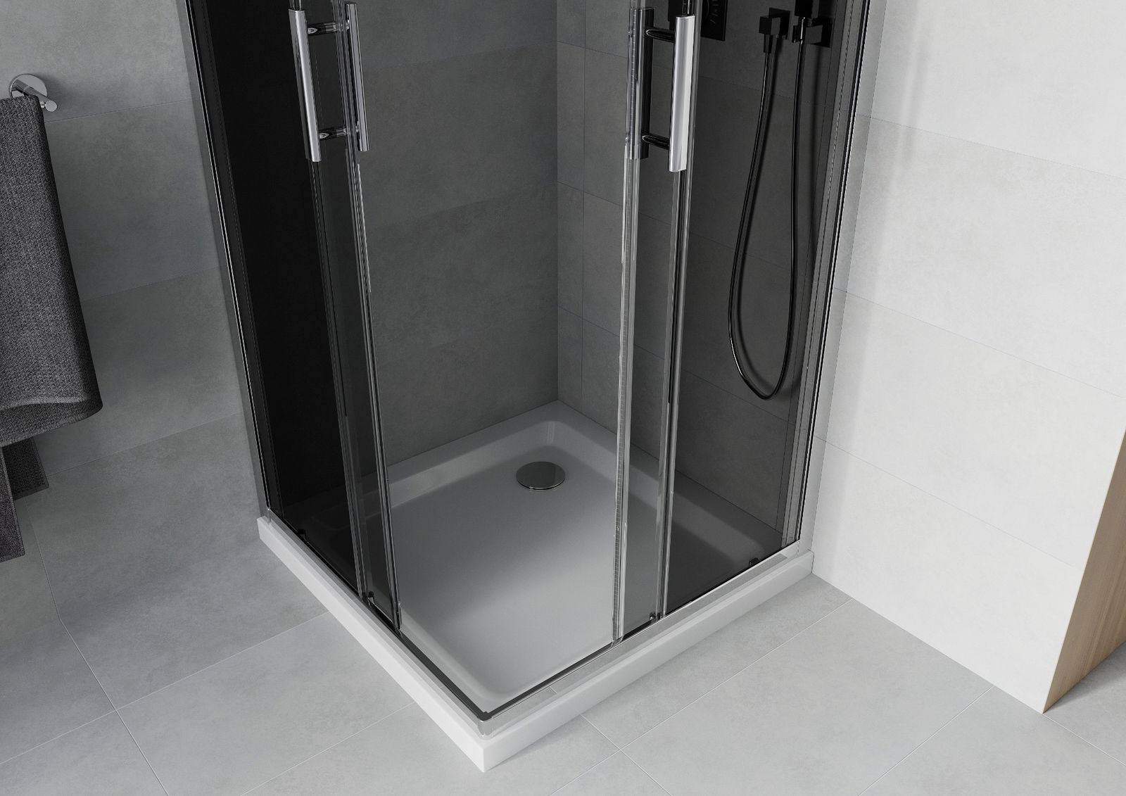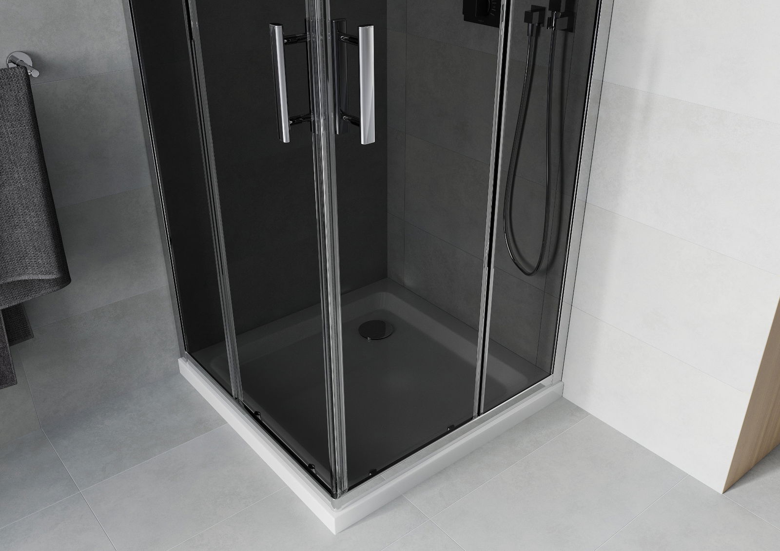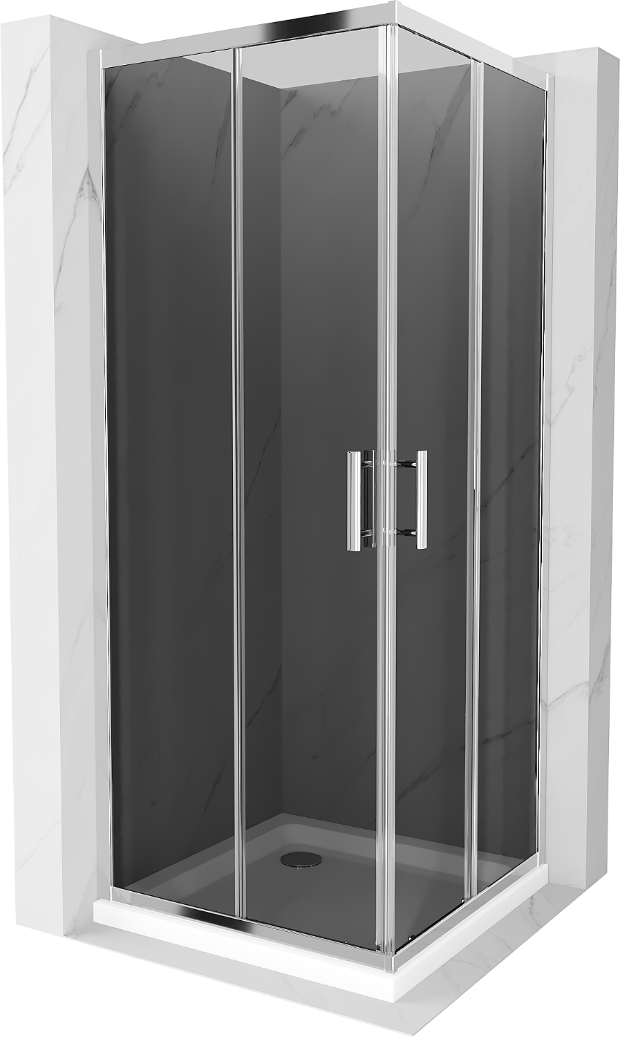 Mexen Rio τετράγωνη καμπίνα ντους 90 x 90 cm, γραφίτης, χρώμιο + ντουζιέρα Flat,