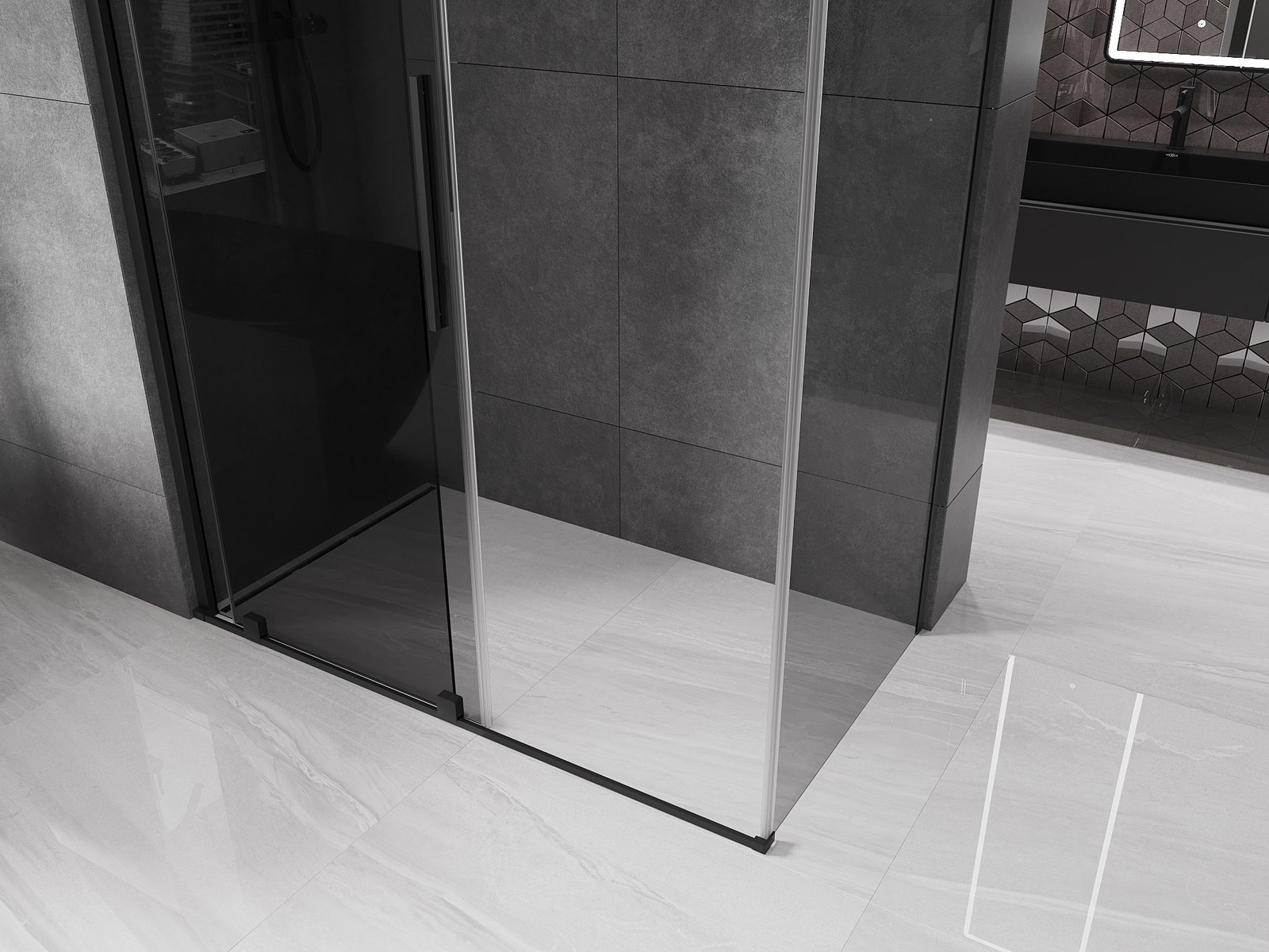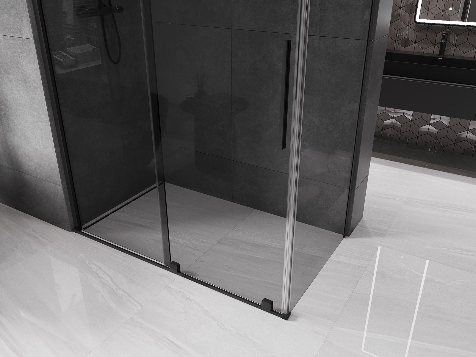 Mexen Velar ντουζιέρα συρόμενη 150 x 90 cm, γραφίτου, μαύρη - 871-150-090-41-70