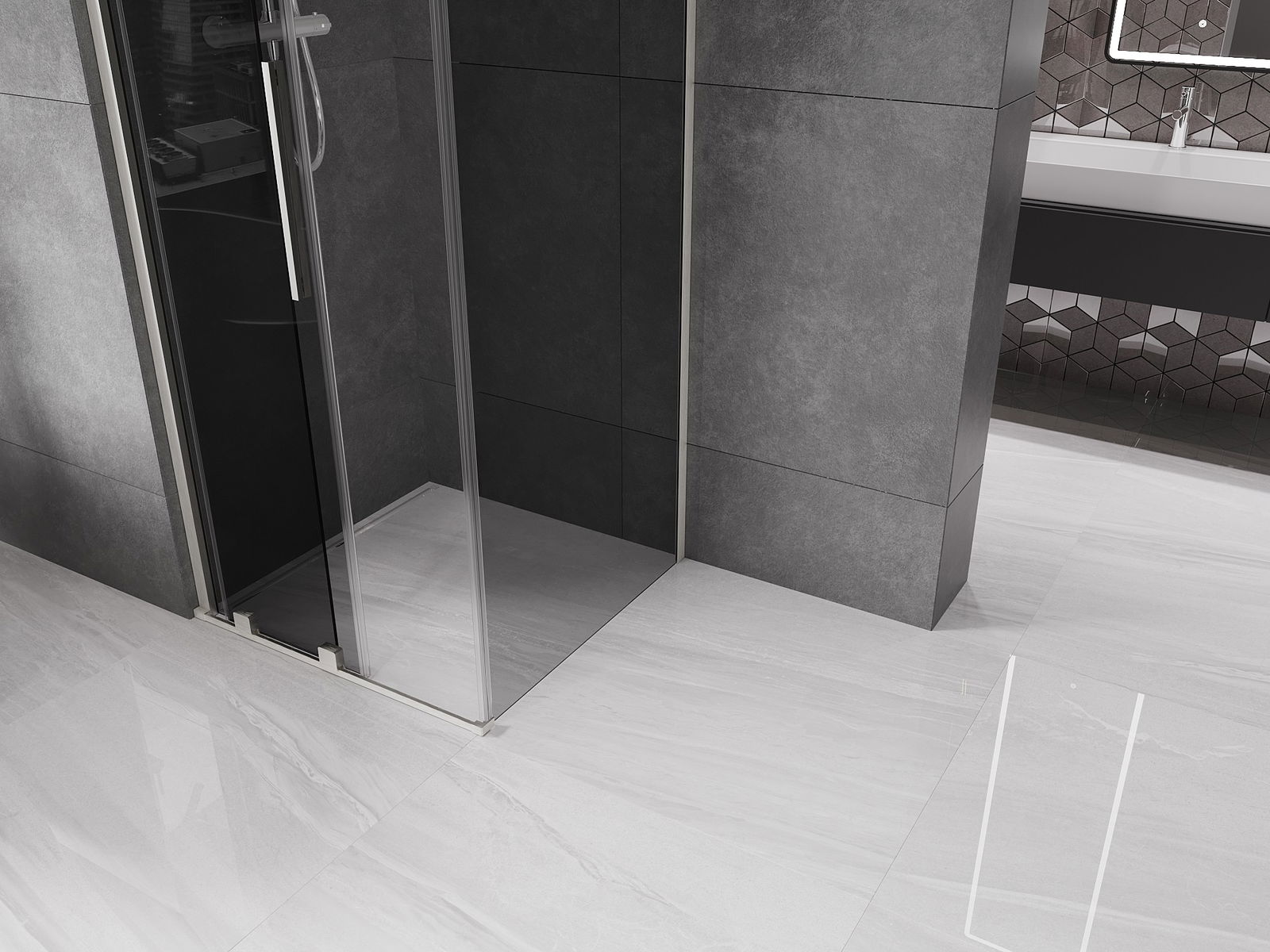 Χάρη στη χρήση ενός καθολικού συστήματος στήριξης, οι πόρτες ντους μπορούν να τοποθετηθούν είτε από τη δεξιά είτε από την αριστερή πλευρά, ανάλογα με τις ανάγκες. Έτσι μπορείτε να σχεδιάσετε με ευκολία ένα ντους προσαρμοσμένο στον χώρο του μπάνιου.
