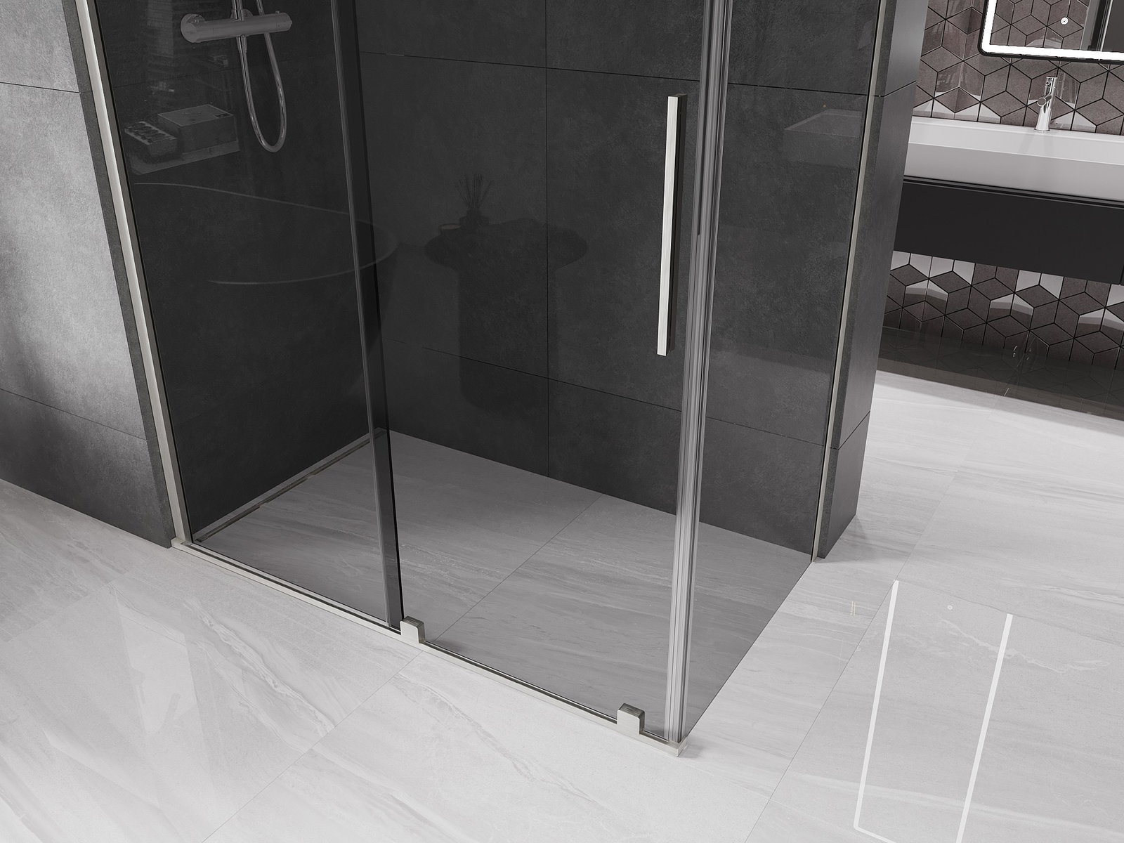 Mexen Velar συρόμενη καμπίνα ντους 160 x 90 cm, γραφίτης, βουρτσισμένο νικέλιο