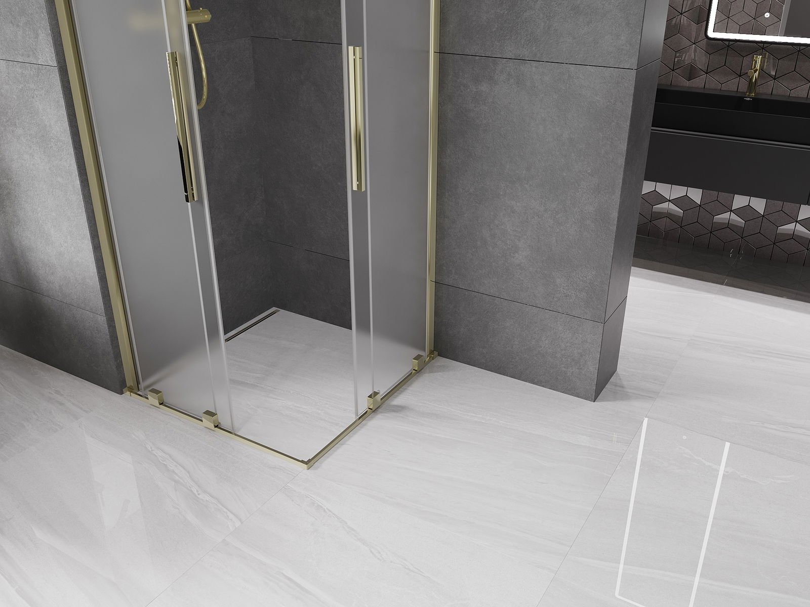Mexen Velar Διπλή συρόμενη καμπίνα ντους 100 x 100 cm, μινιατούρα, χρυσό