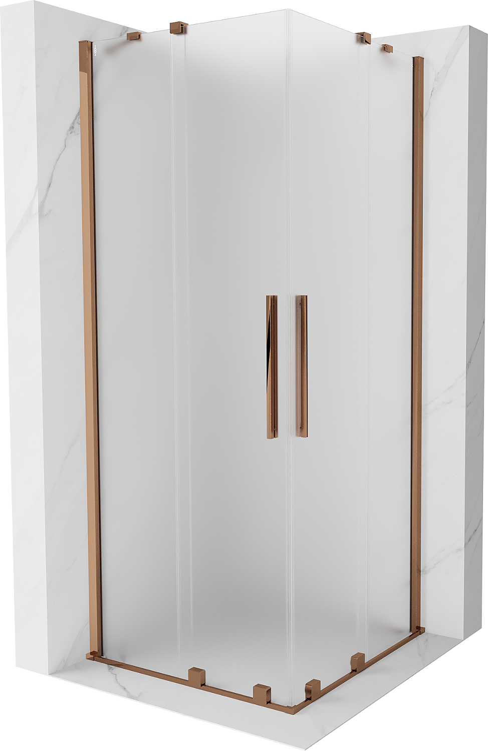 Mexen Velar Διπλή καμπίνα ντους συρόμενη 100 x 100 cm, παγετός, ροζ χρυσό