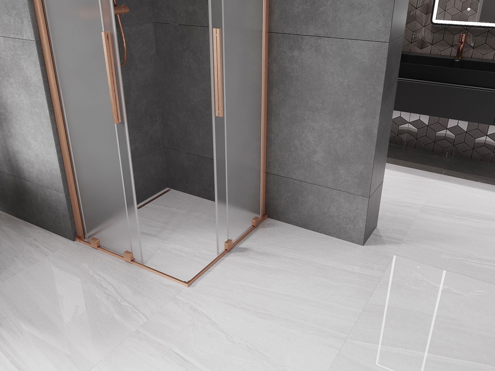 Mexen Velar Διπλή ντουζιέρα συρόμενη 100 x 100 cm, παγετός, βουρτσισμένος χαλκός