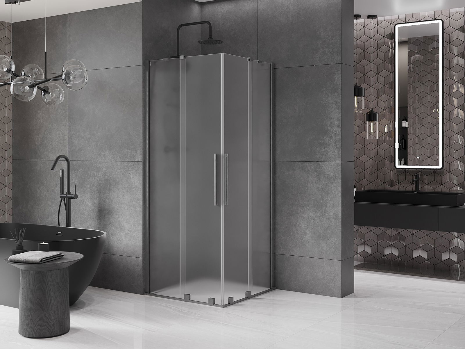 Η πρακτική και άνετη λαβή είναι κατασκευασμένη από ανοξείδωτο ατσάλι. Ο μοντέρνος σχεδιασμός σε συνδυασμό με το φινίρισμα που ταιριάζει με το χρώμα των προφίλ προσδίδει συνολικά μια σύγχρονη και στυλάτη εμφάνιση, υπογραμμίζοντας την αισθητική κάθε μπάνιου.