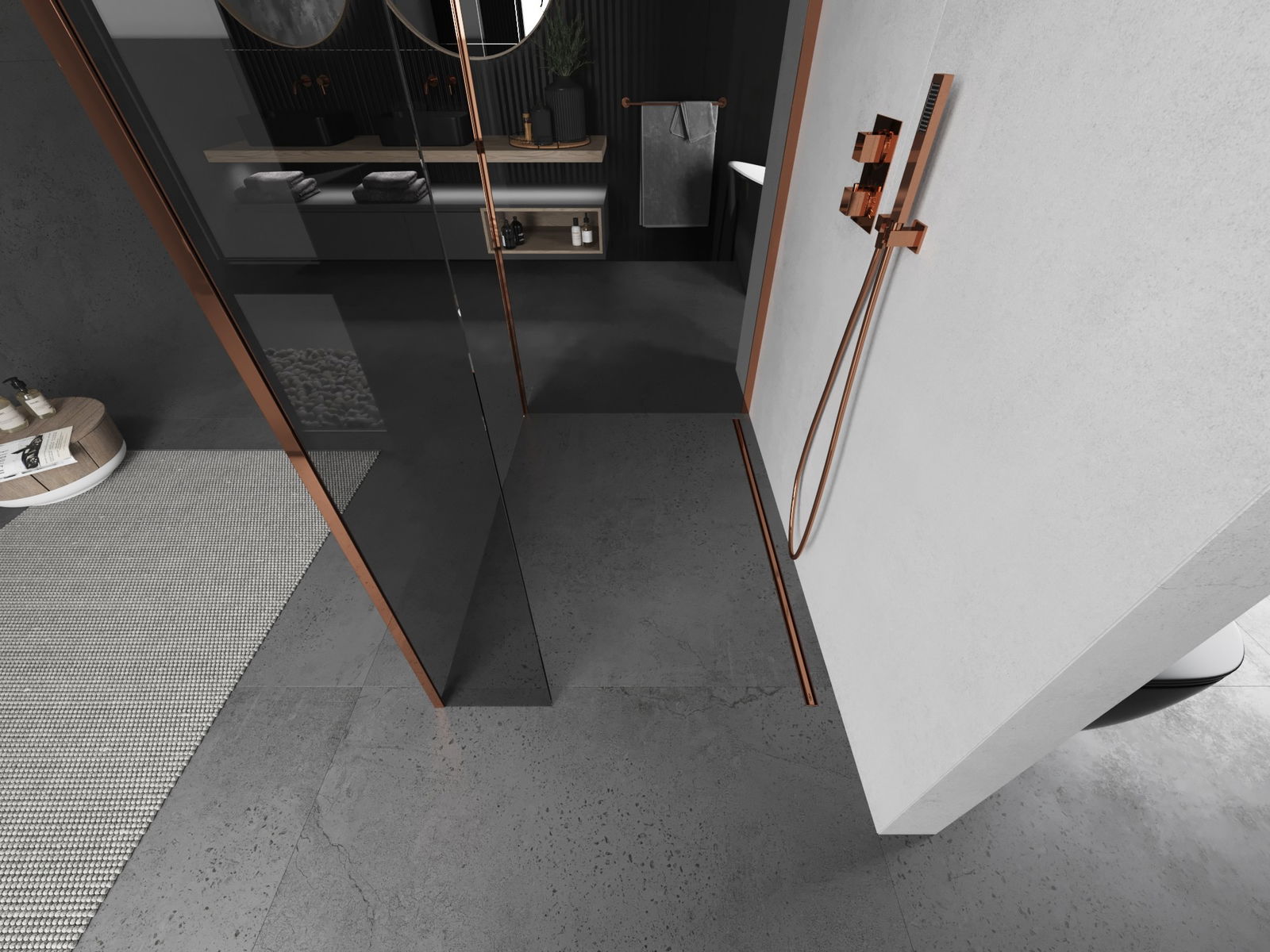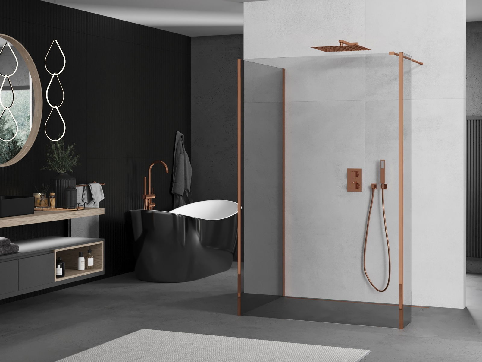 Mexen Kioto Πάνελ ντουζιέρας Walk-in 130 x 100 x 30 cm, διαφανές, ροζ χρυσό