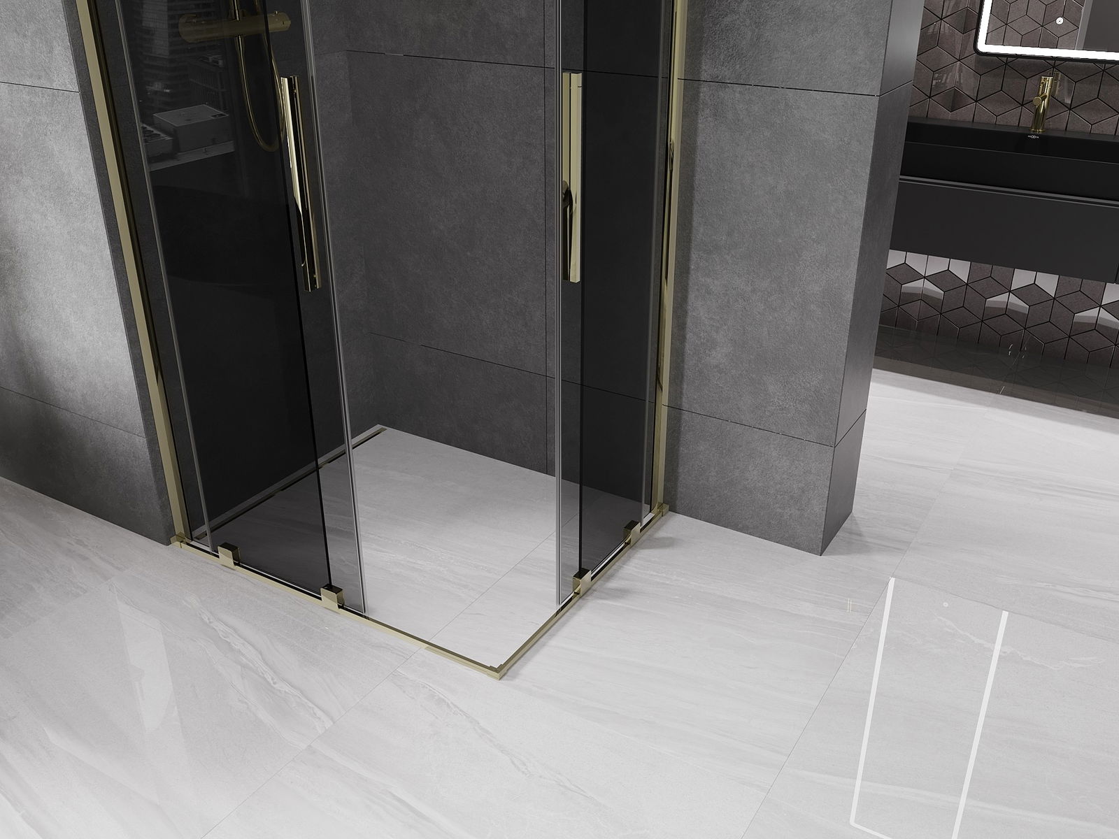 Mexen Velar Διπλή καμπίνα ντους συρόμενη 90 x 80 cm, γραφίτης, χρυσή - 871-090-080-42-50